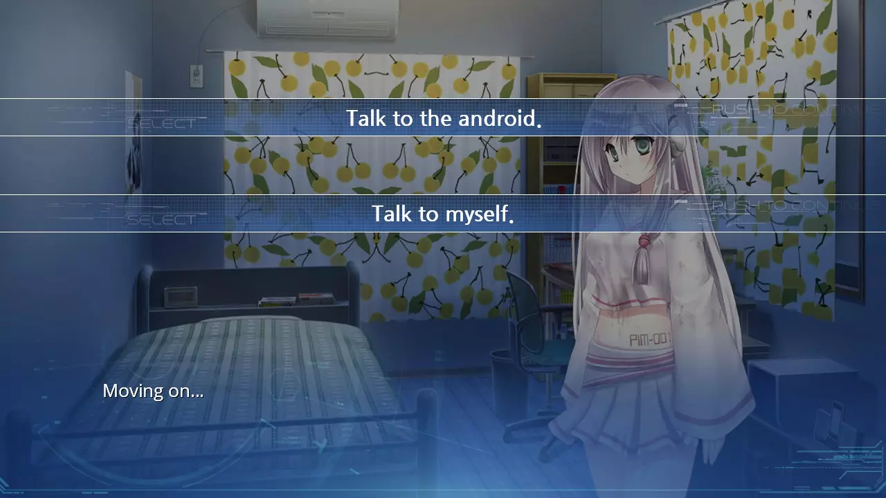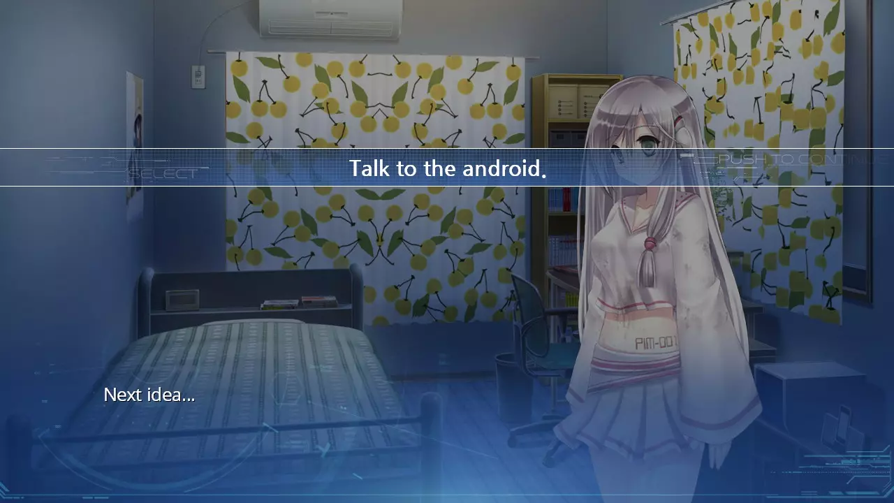 选择【自言自语】选项,然后选择【与仿生人交谈】。 哔哔啵啵。仿生人会让你看她,接着她会开始闪烁。**不要点击她!** 要解锁成就Adventure Gamer,在房间内点击任意三个物体,但**不包括仿生人**。