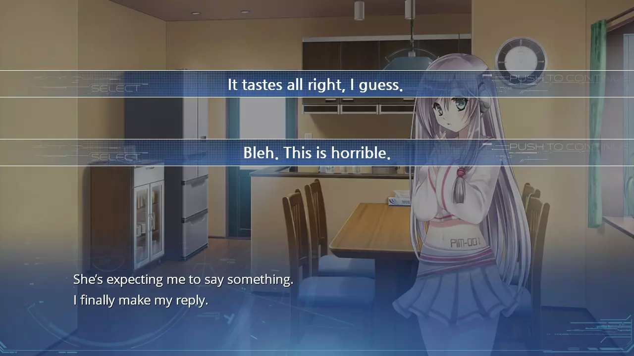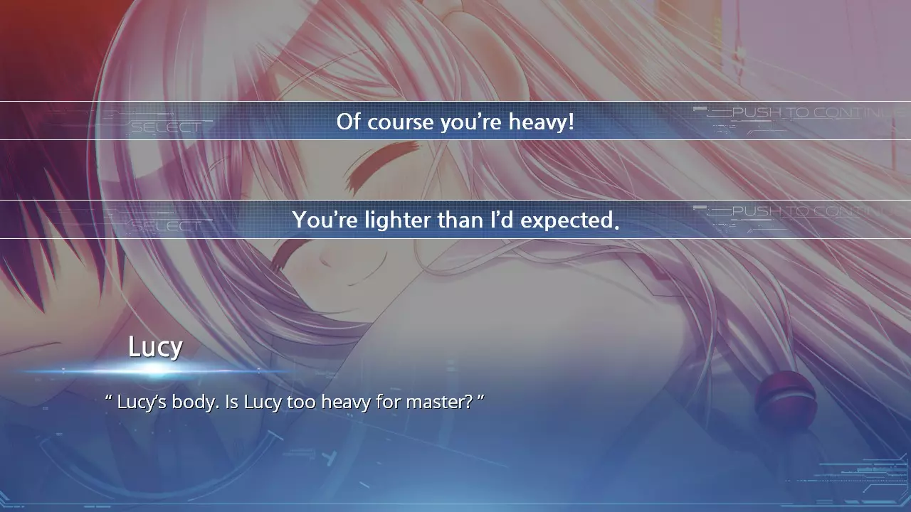 选择选项:“露西是一个制作极其精良的机器人。” 选项008 - 你当然很重! - 你比我预想的要轻。