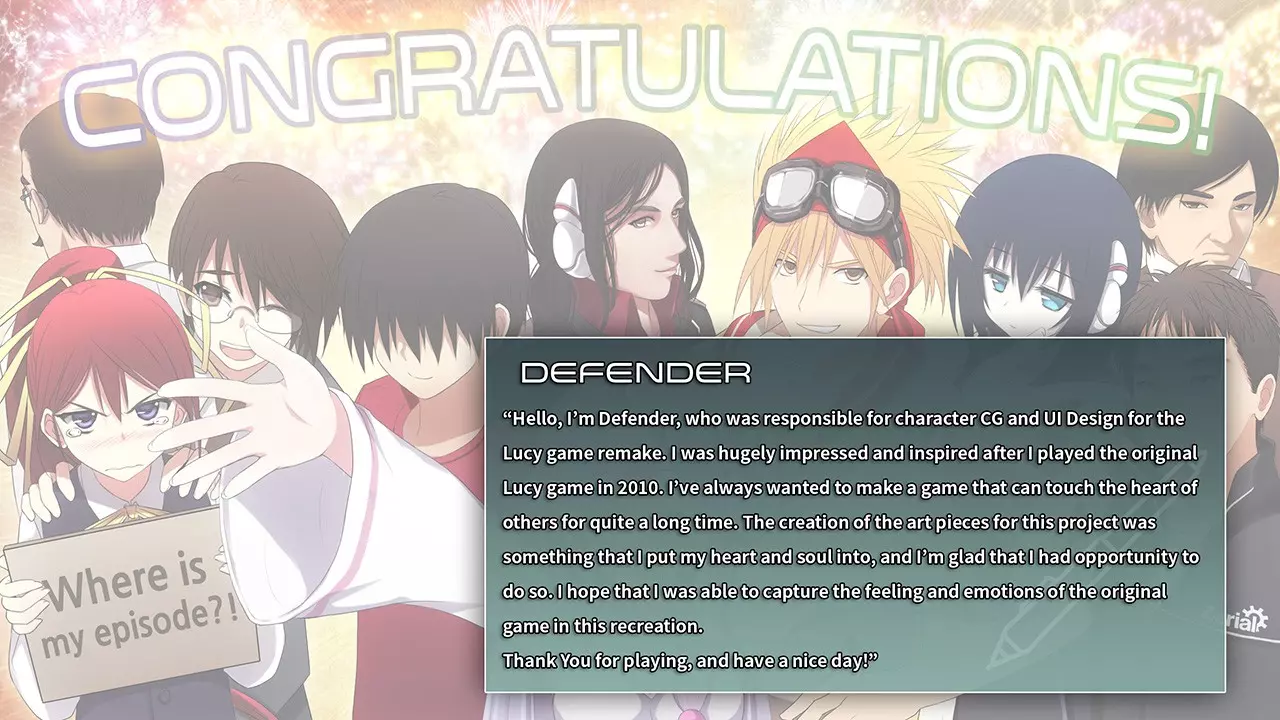 在标题界面,进入【EXTRA】菜单前,左上角的露西身上会散发明亮的光芒。
