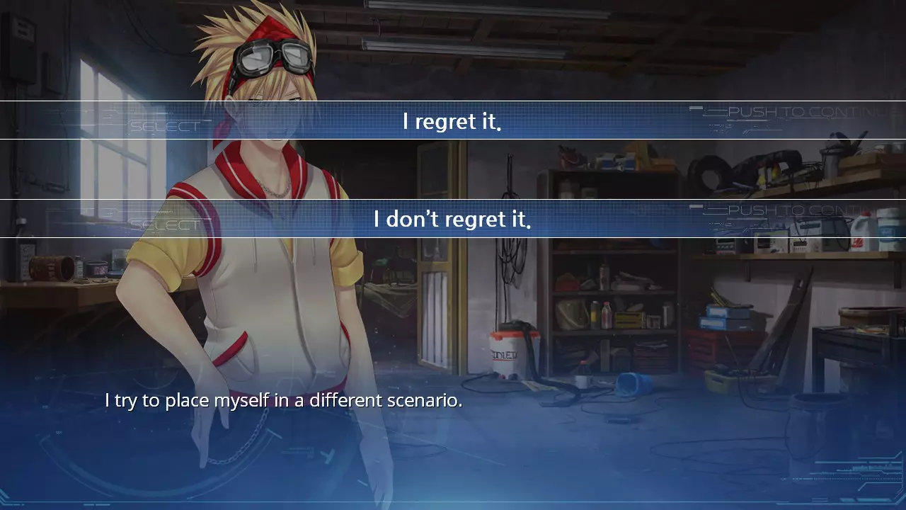 要解锁成就【Dream of Electric Sheep】,请选择【两者都选】选项。 选择015 最终决定;保存你的游戏 - 我后悔了。 - 我不后悔。