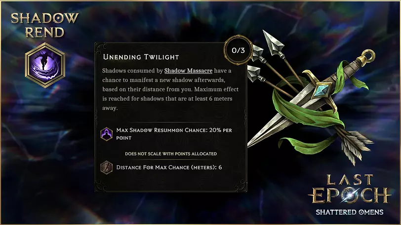 这个全新技能为盗贼带来了更多以暗影为核心的玩法,提供了更多显现和利用暗影的方式。 暗影屠戮 暗影撕裂还通过一个名为【暗影屠戮】的节点引入了新的暗影消耗方式。根据你装备的武器,它会使暗影模仿多重射击或暗影 cascade 的效果。