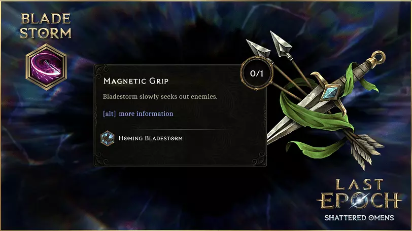 想象一下战利品爆发的场景,但这次是为敌人准备的【尖刺陷阱】! 【磁力抓取】 我们已将【磁力抓取】也移至【剑刃风暴】的技能树中,并且对其进行了改进。现在它们的基础移动速度为每秒3米(原为2米),这使得具有追踪能力的【剑刃风暴】能变成自动杀戮机器,缓慢地搜寻敌人。