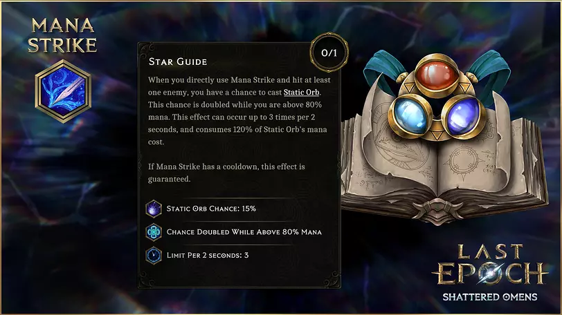 魔力打击 部分魔力打击节点也已调整或更改。 【星辰指引】已重做。现在当你直接使用魔力打击并命中至少一名敌人时,有15%的几率释放静电球。若你的魔力值高于80%,此几率翻倍。该效果每2秒最多触发3次,且会消耗静电球120%的魔力值。若魔力打击处于冷却中,则此效果必定触发。