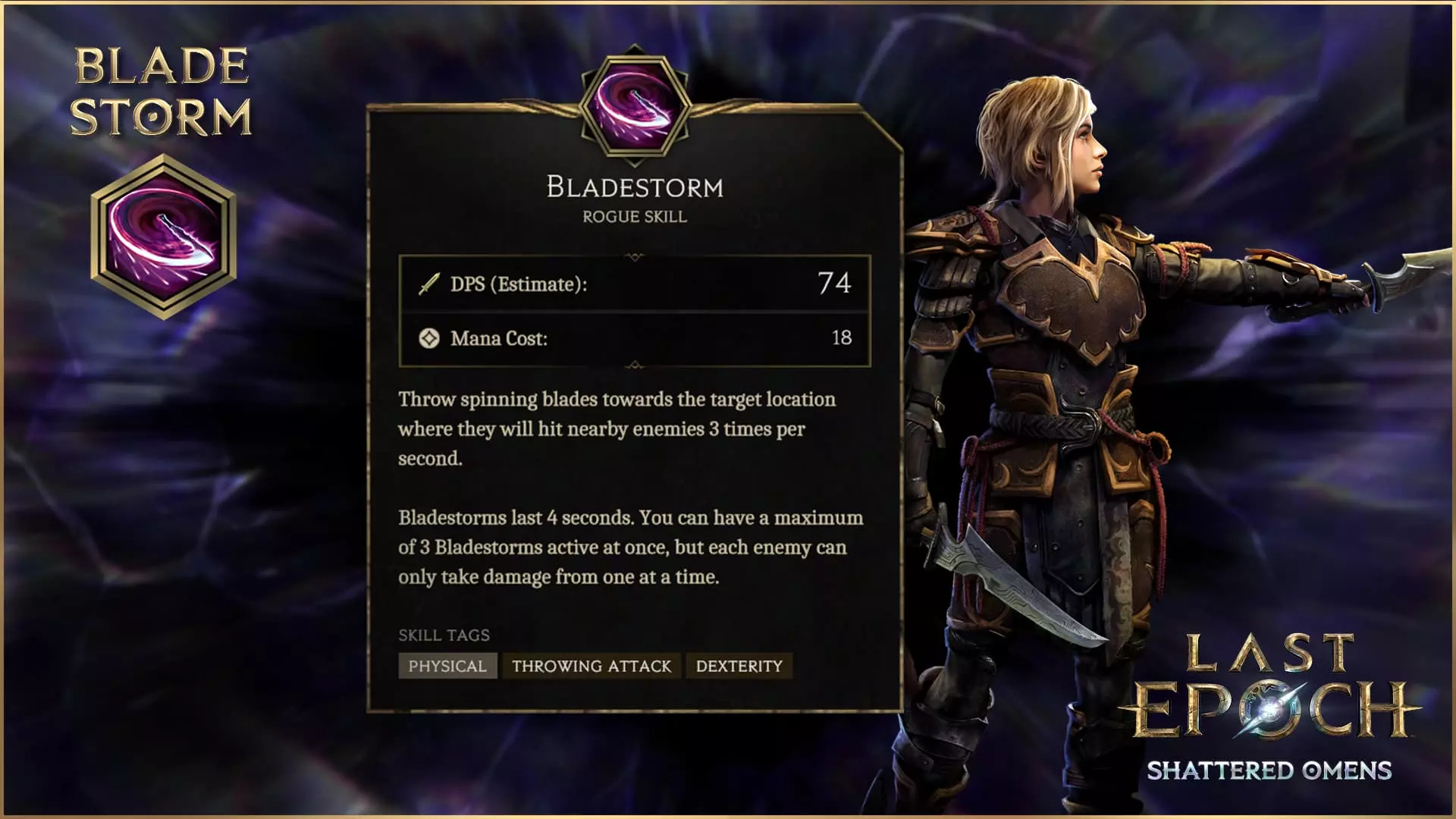 暗影撕裂的介绍应当能激发新的盗贼build思路,我们很期待看到玩家用它创造出什么。不过,这并非盗贼技能的唯一新增内容。我们对剑刃风暴进行了翻新,将其从暗影之刃中独立出来,赋予了它专属的技能树。 剑刃风暴 剑刃风暴一直是暗影之刃最受欢迎的玩法,因此我们希望对其进行充实,创造更多与之相关的玩法。 如今作为独立技能,剑刃风暴拥有了专属的节点,可供玩家根据自身玩法进行自定义和调整。下面就来看看其中的一些节点吧!