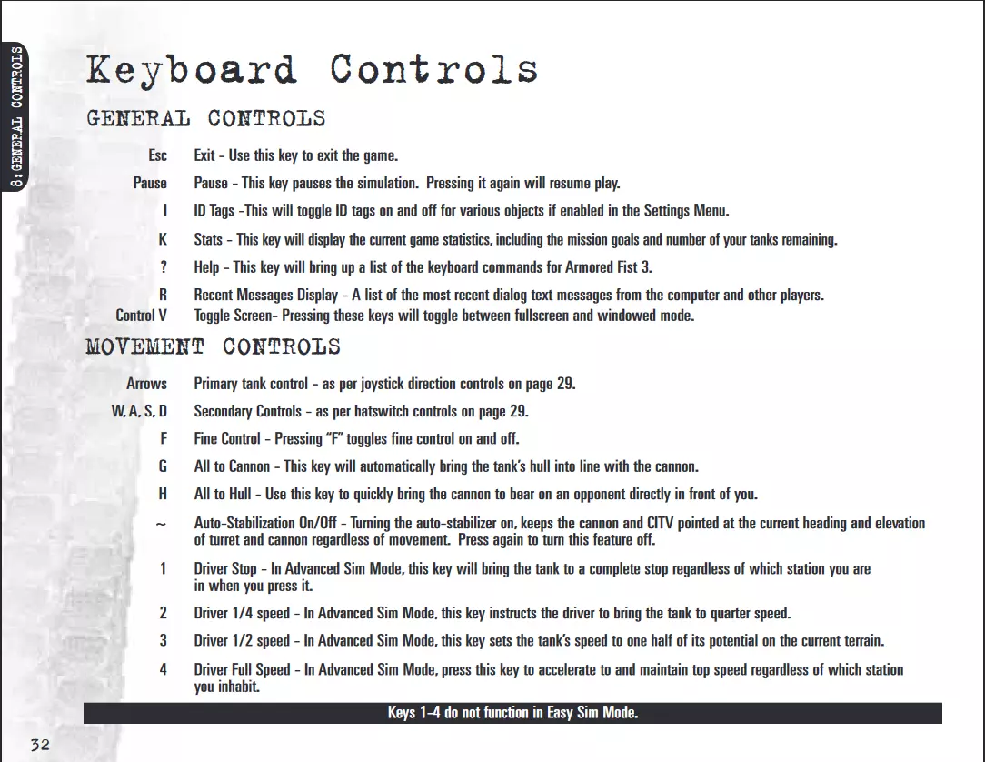 《装甲重拳3》手册中的完整键盘控制截图 完整键盘控制
