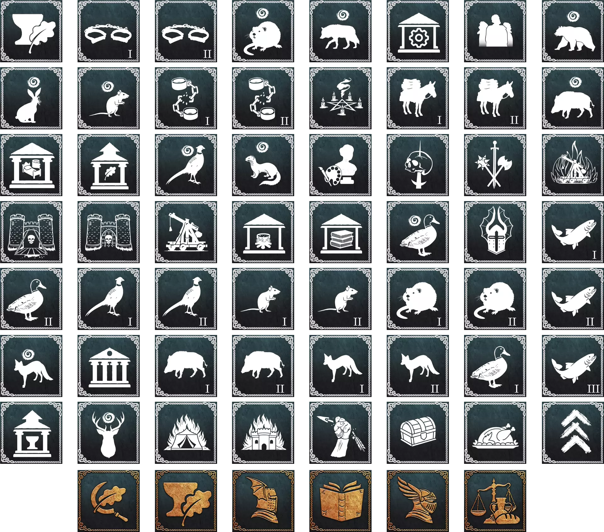 朝圣中心 - 选择此项将解锁新房间类型【圣髑礼拜堂】。它与教堂类似,但需要更大空间和更多物品。一段时间后,会有朝圣者来到你的聚落,并告知圣髑的位置。派遣人员取回圣髑并带回聚落。随着时间推移,NPC朝圣者会来到聚落瞻仰圣髑并传播其事迹。当有5名朝圣者完成瞻仰后,你可以在区域地图中选择将聚落转变为朝圣中心。接受后即“完成”游戏,橡木兄弟会的定居者将离开聚落。恭喜! 异教圣所 - 这基本上就是我们在《中世纪周一谈》中描述的目标。一段时间后,会有朝圣者来到你的定居点,告知你圣橡树的位置。派遣人员砍伐该树并带回树苗到定居点。种下树苗后,你需要围绕它建造【橡树兄弟会圣所】。它类似寺庙,但内部需要放置更多物品,且由于树木会生长,还需要更大的空间。随着时间推移,非玩家角色的异教朝圣者会来到你的定居点,见证圣橡树并将其事迹传播出去。当有5名朝圣者完成传播后,你可以在区域地图中选择将定居点转变为【异教圣所】。接受该选项后,你将“完成”游戏,复原主义定居者会离开定居点。恭喜你!新大学 - 经过一段时间后,你会遇到一位游历的学者,他会告诉你【宏伟研究桌】的位置——这是一张用于撰写论著的古老桌子。将其带回你的定居点后,你需要将它放置在【学者图书馆】中——接受这个宏伟目标后解锁的新房间类型。它与普通图书馆有些相似,但需要更大的空间、更多的书籍以及与书籍相关的物品。指派一名定居者撰写【有影响力的论著】——汇集提炼知识的伟大纲要。完成后,前往区域地图,将你的定居点升级为新大学。恭喜你,你“完成”了游戏!贸易宪章 - 建造足够数量的商人货摊、市场十字架和宝库,提升你的经纪人等级,积累大量金币。一段时间后,来自中立或友好派系的经纪人会前来提供一笔大型贸易交易——交易物品可能是武器、家具或布料。接受交易后,区域地图上会出现一个贸易协议地点。派遣商队携带约定的物品前往该地点并接受交易。恭喜!你已准备好成为贸易中心并“完成”游戏。为了庆祝,4-5名商人将带着一些旁观者出现在你的定居点并向你出售商品! 王国守护者 - 如果你接受此目标,区域地图上会出现多个强盗据点。击败其中3个,你将获得【王国守护者】称号。恭喜!你“完成”了游戏。 秘密 - 承受你行为带来的后果。 新房间、新角色与新事件 为了完成上述目标,你需要为定居者分配角色,在定居点内建造新房间,并参与各种事件。