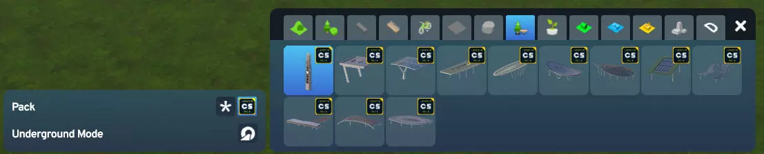 所有天桥均采用最适合的道路宽度,并在中央分隔带上升级了宽阔的人行道。 14个可放置道具: 最后,该扩展包包含14个道具,供你在自定义城市空间时自由使用。其中包括我们详细介绍过的两个建筑站点,以及玻璃材质的现代中央钟楼,它可以自由放置,甚至可以用于环岛中心。 所有道具都可以在【景观美化】菜单的【公园】选项卡中找到。你也可以通过【城市车站】扩展包进行筛选,以便更轻松地找到它们。 但这些道具究竟是什么呢?由于屋顶设计各不相同,它们在技术上都属于游戏中所说的子对象——本质上是《都市:天际线2》中“道具”的专业术语。由于这些元素具备随机生成的特性,因此它们的功能类似于道具。我决定将其中大部分开放出来,供您自行使用,以便创建自定义广场、站点或其他任何您想用来装饰城市的元素。 这11个亭子可以自由放置,其碰撞体积仅与主体结构或支撑柱对齐。这意味着您可以轻松在它们下方进行建造,而不会遇到碰撞错误——当然,前提是您要避开柱子。