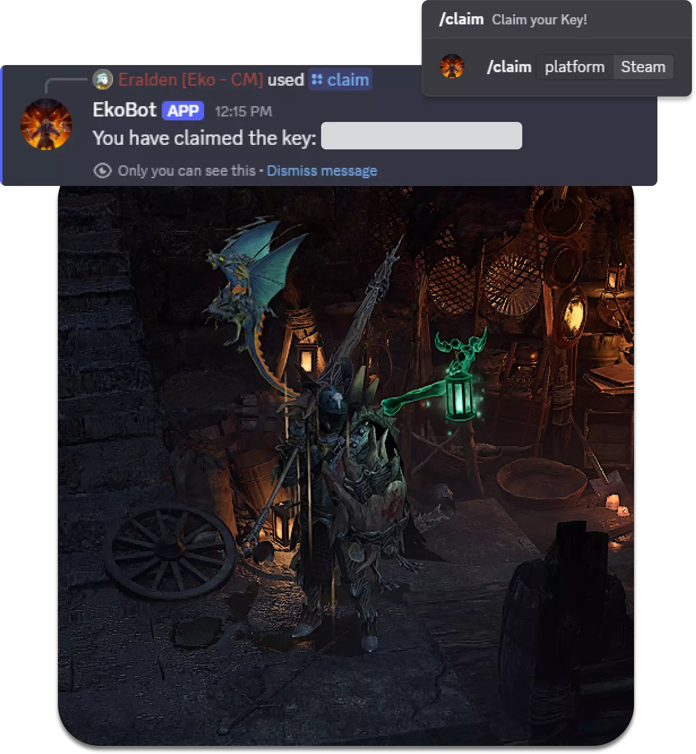 如何获取DLC? 1.加入Discord 2.在任意频道输入指令/cclaim 3.从机器人消息中获取激活码 4.打开Steam,依次点击游戏、在Steam上激活产品,然后输入激活码 5.在物品栏的外观标签中装备新外观