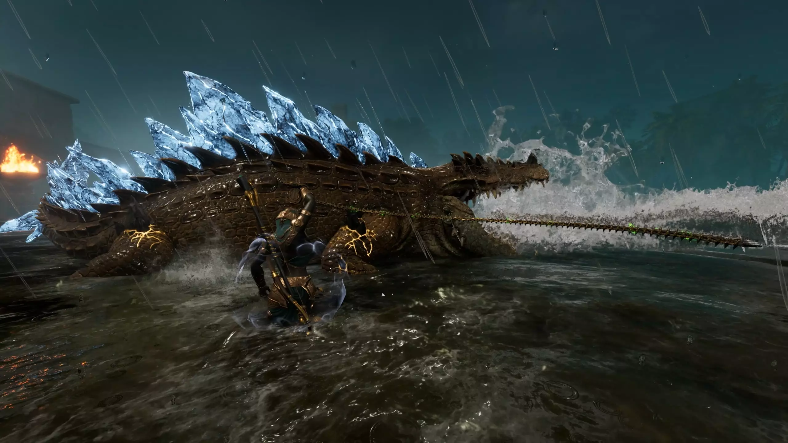 作为洪水之神索贝克的化身,索贝克鳄鱼掌控着水与火的力量。它能召唤带电的洪流将你拖入水底,或将你化为火焰中的灰烬。