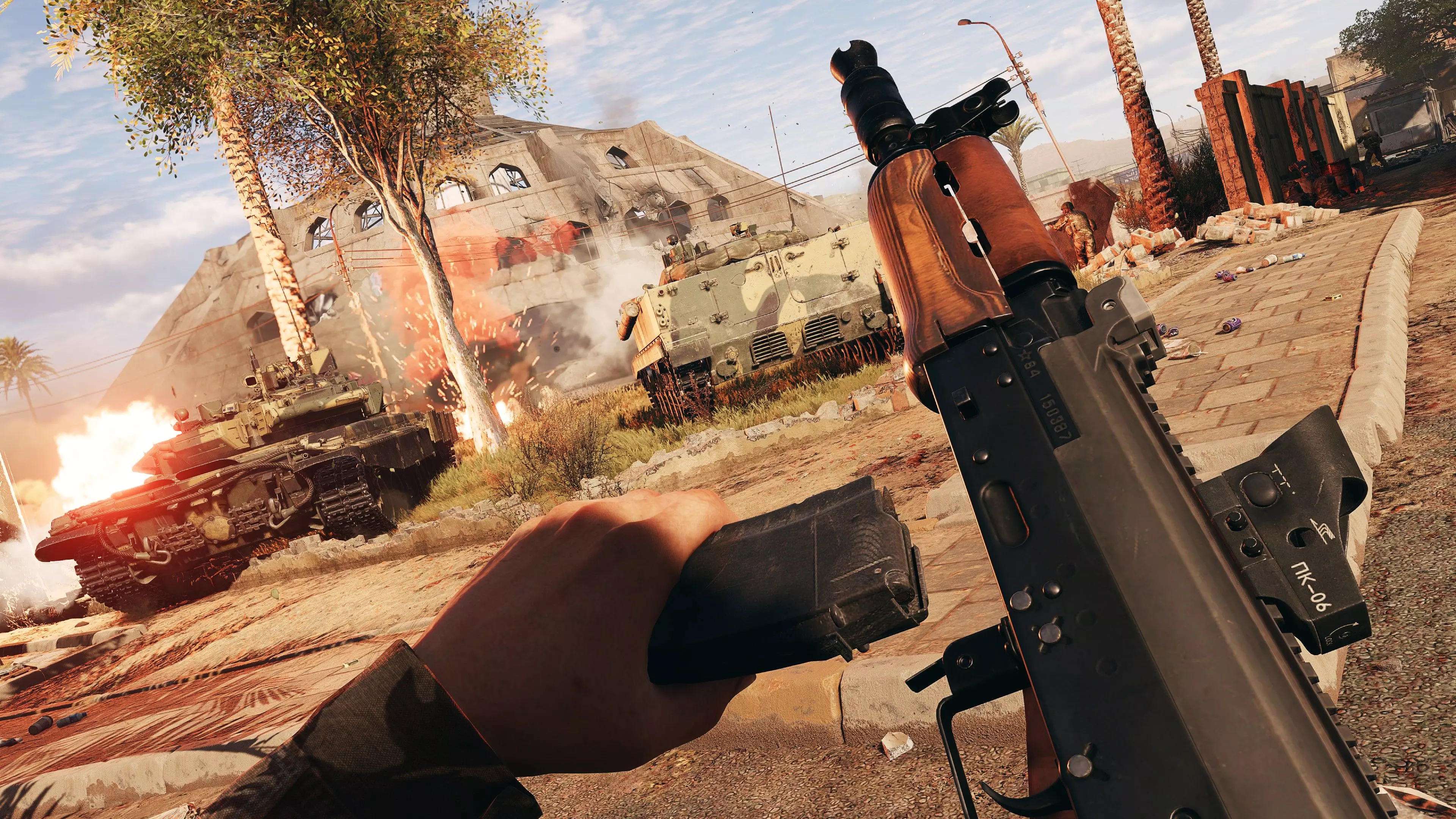 新测试阶段将推出一张名为【Al-Massa】的全新地图,该地图采用中东城市风格设计。士兵的制服和装备已根据新环境进行调整。为这张新地图创建了支持40人和128人的 domination 游戏模式。 我们还为您准备了一些新武器: - 著名的短款AKS-74U,这是5.45毫米口径卡拉什尼科夫突击步枪的紧凑型版本 - 性能出色的FN SCAR-L突击步枪 - 罕见的7.62x39毫米口径KORD 6P68突击步枪 - 美国柯尔特9毫米冲锋枪 - 为了对抗敌方无人机和地面部队,还引入了12号口径KS-P和莫斯伯格590军用霰弹枪。我们也一直在研发无人机,其已发生重大改动:现在每场战斗的发射次数有限制。补给箱的功能也已更新。首先,医疗箱现在更轻便,但对可补充的急救包数量有严格限制。其次,除补充手榴弹外,爆炸物箱现在还能恢复无人机的发射限制。 改进与优化 [轮播图]