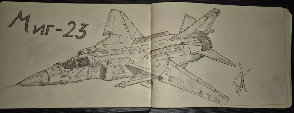 一幅超棒的米格-23铅笔素描,画得真好!作者:Trahenwaffen