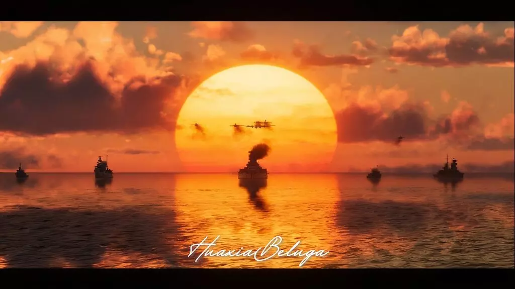 背景中有船只的美丽日落! 作者:Elysia=华夏beluga·爱莉希