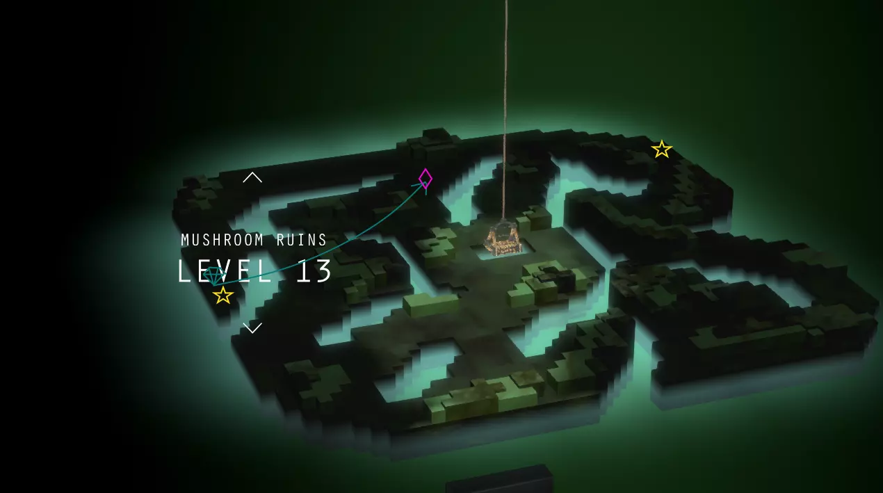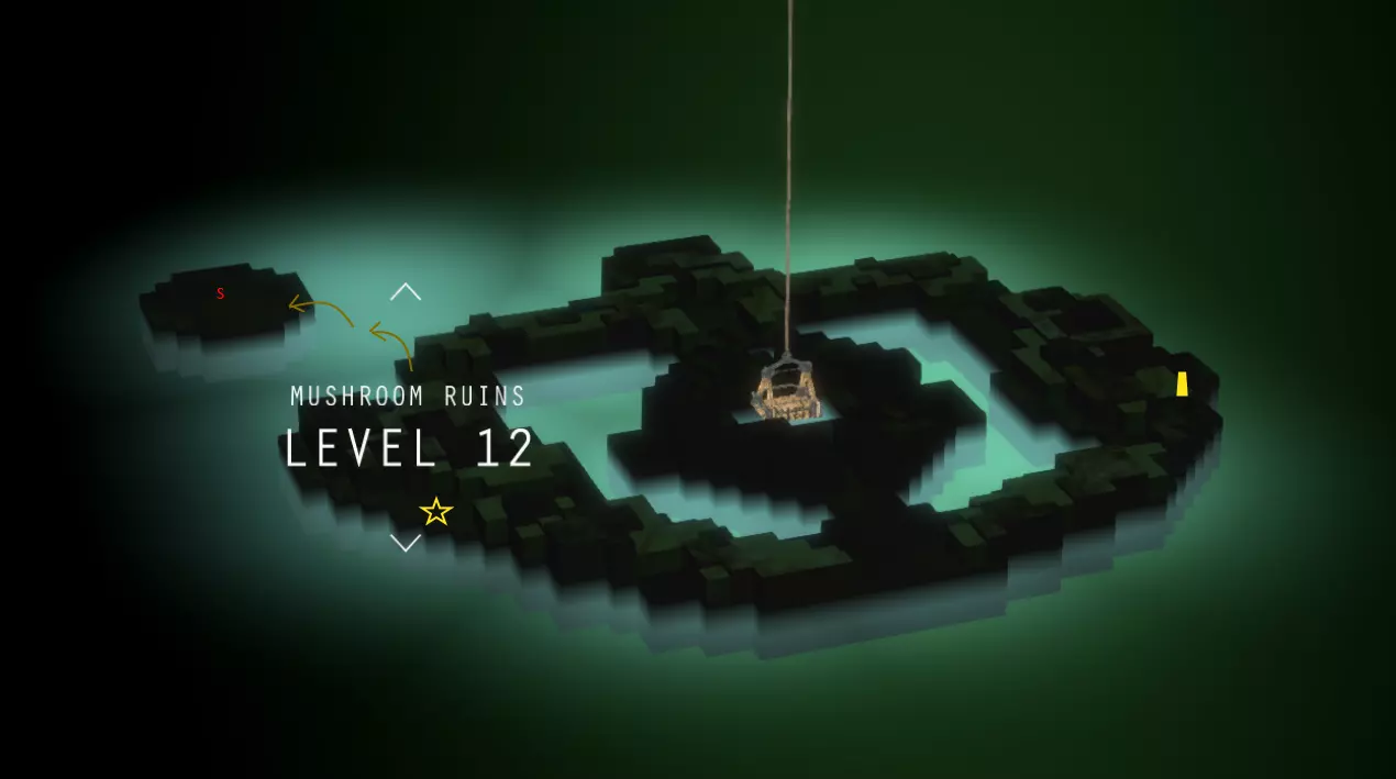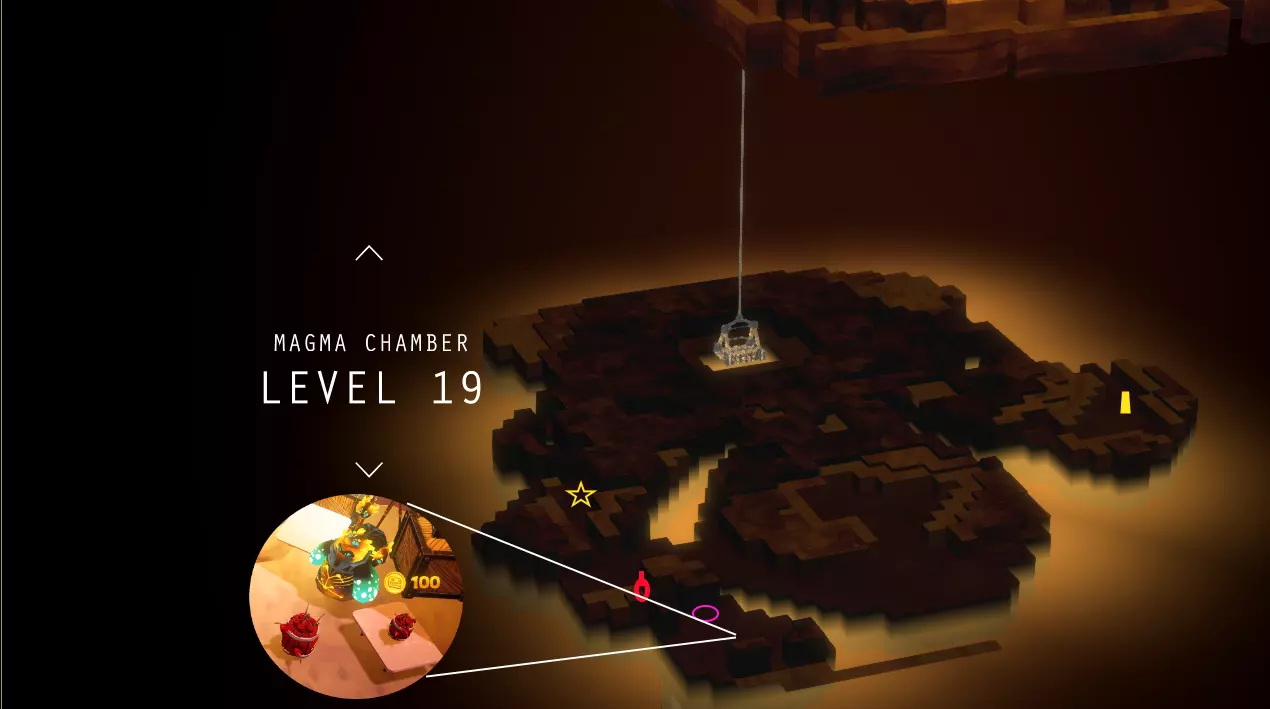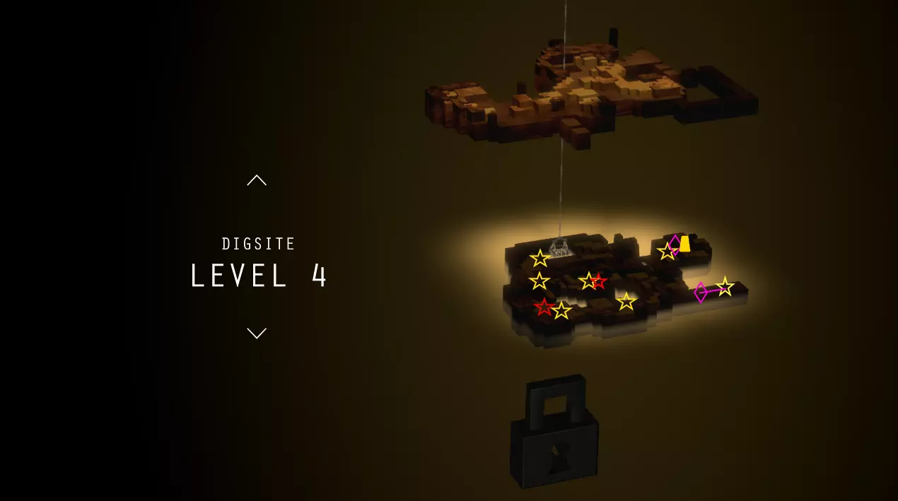 简单地图上标记了日志页(星星)、黄金偶像(方块)、能量泉(圆圈)和店主。需要挖掘的日志页用红色星星标记。挖掘场