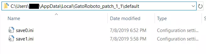 令人意外的是,在你和巴克利成功升空后,《猫咪机器人》目前并没有提供任何正当途径让你返回星球去寻找那些最后的隐藏物品。不过幸运的是,我们有一些不太正当的方法可以使用,那就是修改存档文件。 步骤1:找到并打开你的存档 正如大多数理性的人会告诉你的那样,修改存档文件首先需要找到它。导航到下面显示的文件夹(将黑框部分替换为你的用户名),然后用你喜欢的文本编辑器打开想要修改的存档文件。存档文件编号为0-2,所以存档1是save0.ini,存档2是save1.ini,存档3是save2.ini。