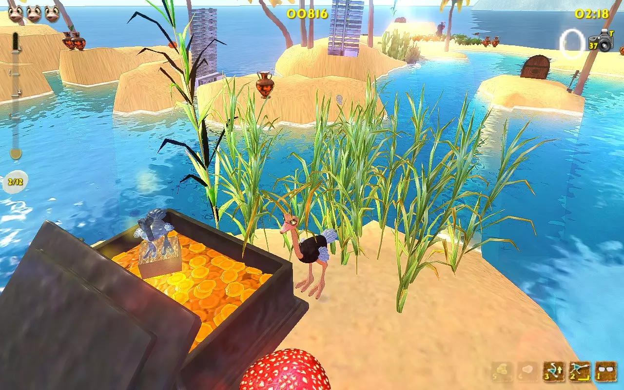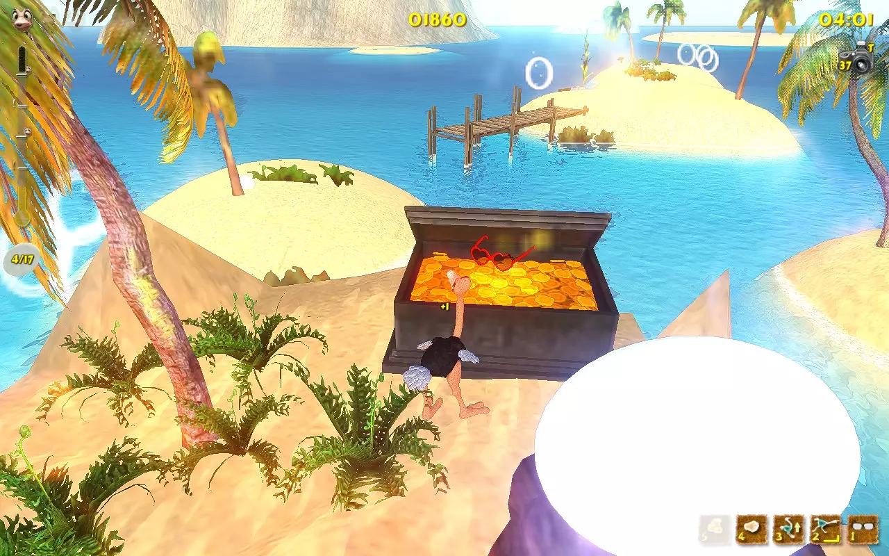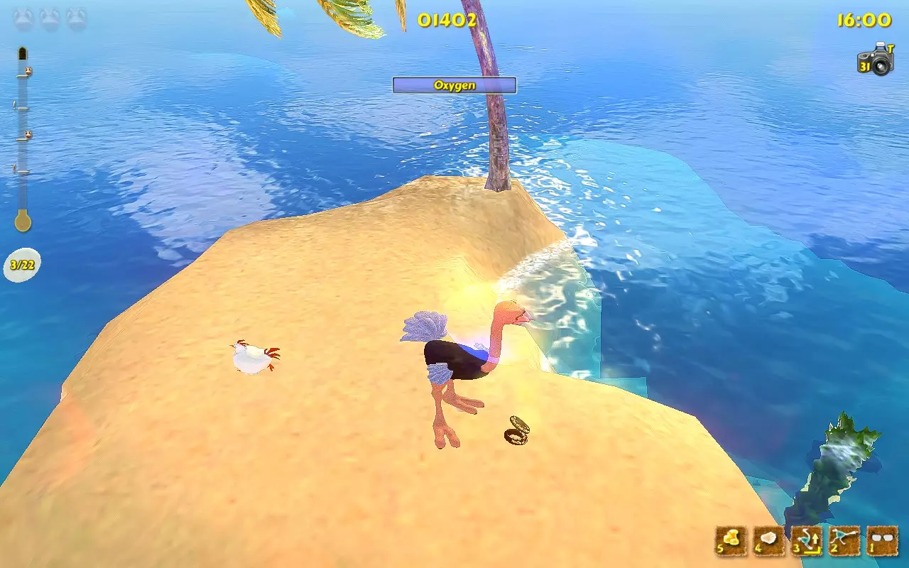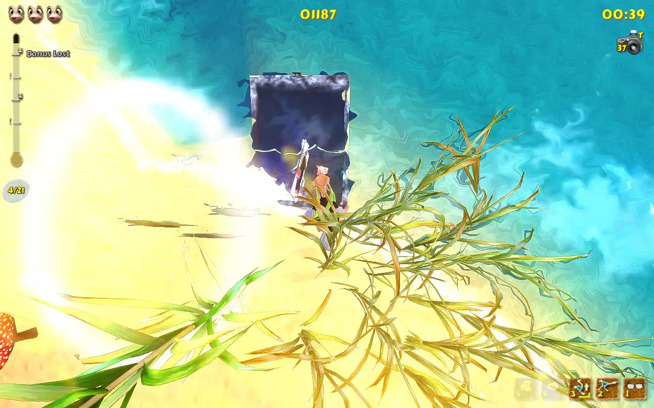 你带着至少3只雏鸟走在沙滩上。 1.获取第一个伙伴(小鸡,动物)。要做到这一点,你必须先前往13号岛屿。接下来,只需在13号岛屿上游玩,通过将母鸡踢向大门来“拯救”它们,然后等待金色小鸡最终出现。这种小鸡的出现几率不高。一旦你看到这个黄色生物,就冲向它并踢它。它会掉落一个蛋,你需要捡起这个蛋。恭喜你,你获得了第一个伙伴动物。 2.喂养你的小鸡。它以瓢虫和水果为食。而且,必须由它自己捡起食物。难点在于你无法控制它,但很容易不小心踢到它或给它提供食物。和以前一样,棕榈树在这里很有用。把食物丢给鸡,踢一下它,等它进食,观察小鸡变胖的过程。 3. 等待你的鸡下蛋。道理很简单:我们喂食,我们等待。恭喜你,又多了一个宠物! 4. 现在你需要养第二只鸡,等它下蛋。 这个过程有些枯燥,因为有几个注意事项: 1. 不要踢你的宠物,否则它们可能会离开。踢5下=失去小鸡 2. 每只鸡只能下一个蛋。等它下第二个蛋是没用的。 3. 致谢 Easy Target的原始致谢页面: “我要向以下人员表示感谢: 用户Chris Fifty-Two,感谢其在游戏机制研究以及阐明达成各项成就所需条件方面提供的宝贵帮助。 用户Dinopunk,感谢其提供寻找所有照片的指南。 YouTube用户Roy Hess,感谢其制作的视频攻略。 感谢开发商MeDungeon Games创作了本游戏并提供真诚的技术支持。” 额外感谢: 感谢Easy Target创作了原始的俄语指南并整合了所有成果。