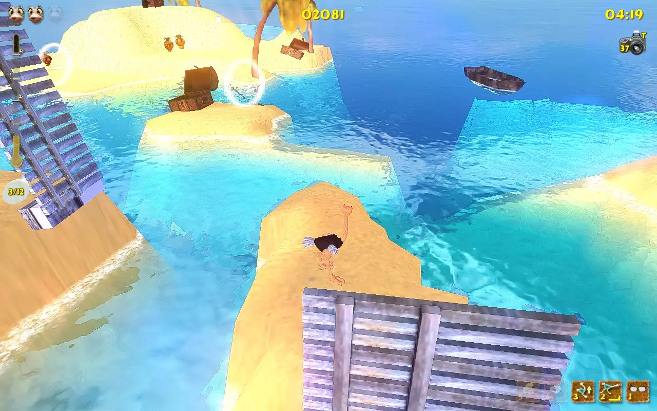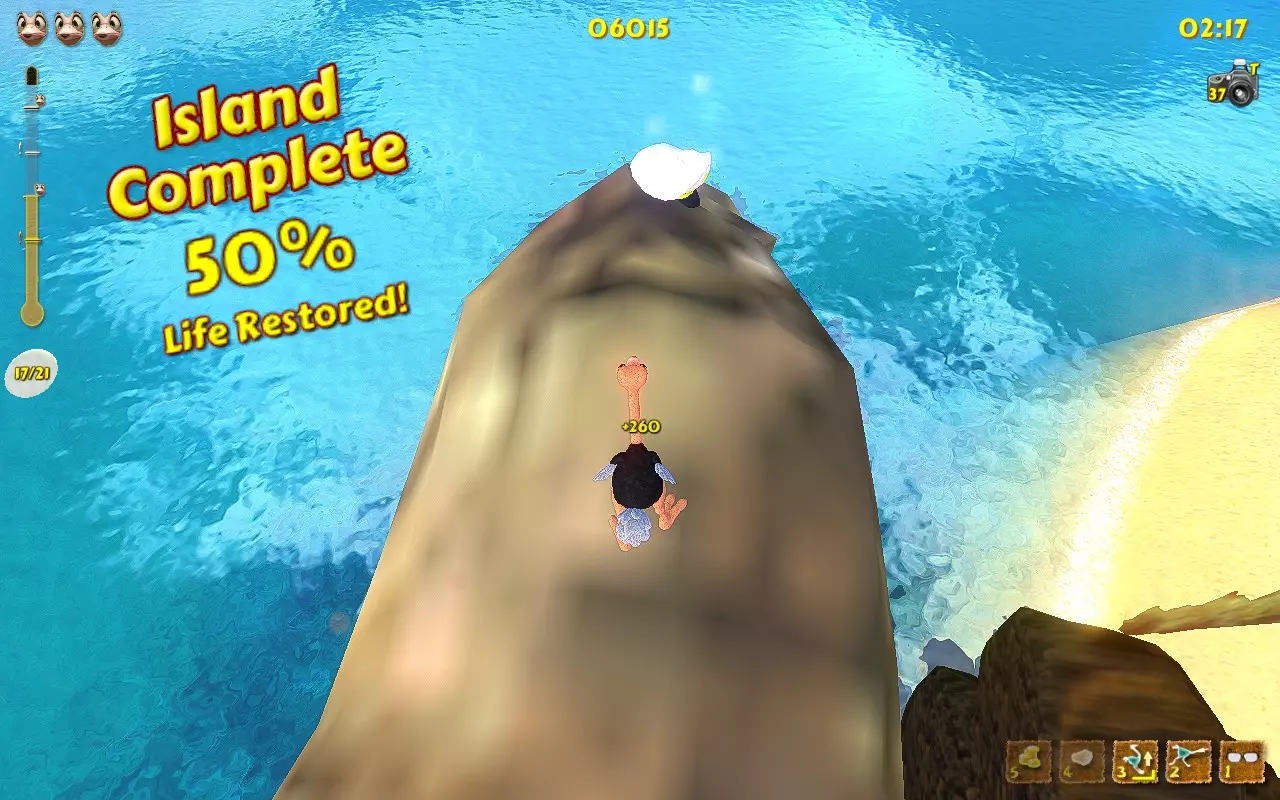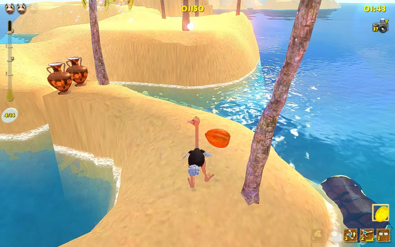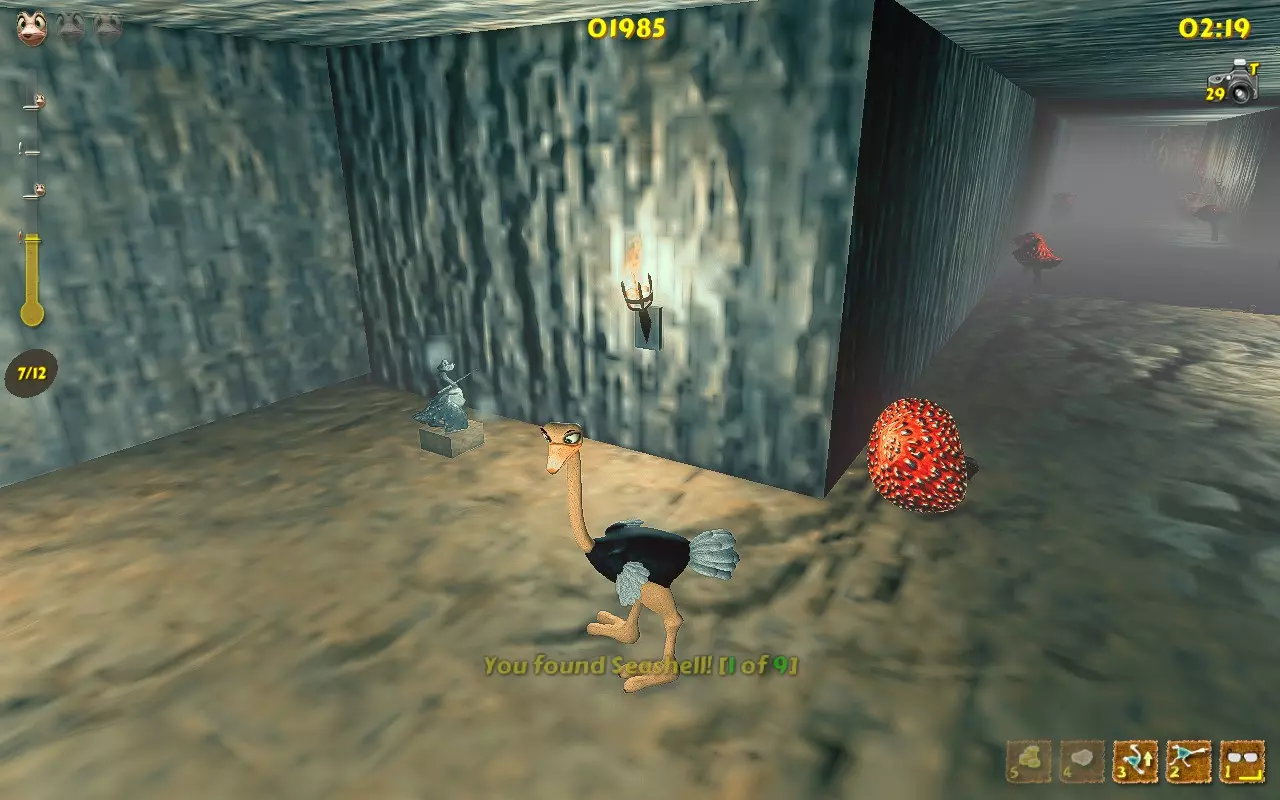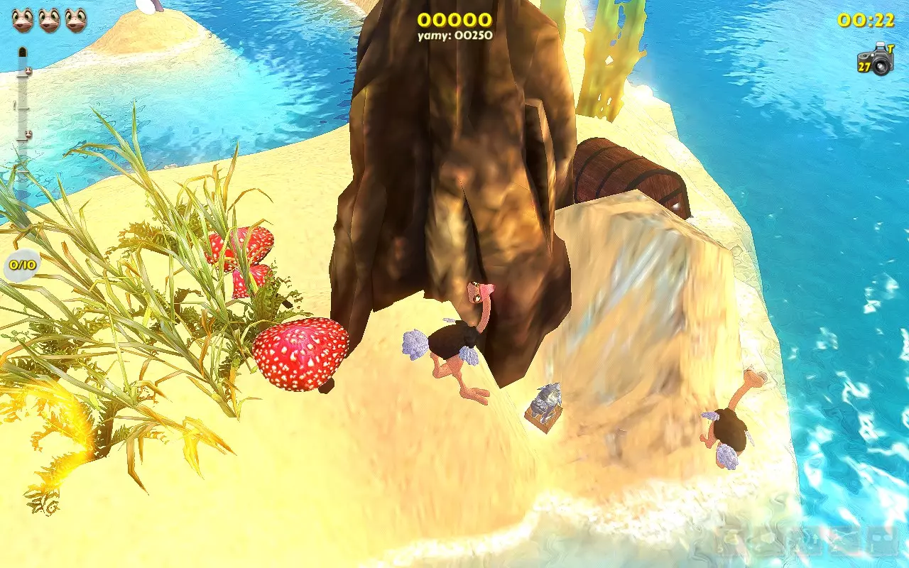 常见物品: 热带鱼:在早期关卡出现并试图逃入水中的鱼。 旧指示牌:任何提供线索的指示牌。 有趣的棕榈树:推倒树木并为其拍照。 古老岩石:普通石头。1号或2号岛屿。 鸵鸟蛋:白色的蛋。 美丽蝴蝶:停在沙子或物体上的蝴蝶。 沙地蘑菇:沙子中的红色蘑菇。例如,在1号岛屿上。 失事船只:海岸边的船只。任何有水的关卡都有一艘。 陈旧宝箱:标准的棕色宝箱。 小贝壳:我们在每个关卡收集的小贝壳。 古老陶罐:我们在每个关卡打碎的那些陶罐。 可爱瓢虫:从打碎的陶罐中出现的瓢虫。 稀有物品: 原住民雕像:在早期关卡发现。石头头部雕像。 发光蛋:用于修复传送门的黄色蛋。例如,在4号岛屿上。 普通蛋:有时会从破碎的花瓶中掉落的绿色蛋。 稀有蛋:有时会从破碎的花瓶中掉落的紫色蛋。 被摧毁的神像:用踢击摧毁神像并拍照。重击者能力会加快此过程。 破损的传送门:需要金蛋才能修复的破损传送门。位于4号岛屿。 巨大宝箱:顶部有盖子的大型黑色箱子。通常装有帽子、皮肤、雕像。 独特事物: 脏泥鱼:位于6号岛屿。躺在右侧的泥池中。 可怕怪物:如果电脑日期为10月31日,会将大龙虾替换为骷髅。你可以更改电脑日期。 南瓜头:如果电脑日期为10月31日,会将芒果替换为南瓜。位于1号岛屿的拱门下方。你可以更改电脑上的日期。 巨型雕像:5号岛屿起点处的雕像。 蝴蝶群:达成【Entomologist】成就后,出现在巢穴中。 云层轨迹:拍摄连续出现的多个云平台。 仙女环:5号岛屿起点后方的蘑菇环。 蓝色火焰火炬:7号岛屿上,瀑布附近唯一的蓝色火炬。 奇花:2号岛屿的石制建筑内,拍摄花朵。 巨蛋:5号岛屿上,拍摄巨大的蛋。(位于传送门所通向的宝箱内,或此前已放置的雕像前的巢穴中)。 致命鲨鱼:10号岛屿的水下。 被遗忘的玩偶:12号岛屿的宝箱内。如果已收集到(某物品),但你忘记拍照,它就会像战利品一样躺在巢里。 游乐船:完成第11关登上船后,船会开始绕着巢转圈。你需要等待并在雕像附近拍照。 能力成就 能力可以在主菜单中通过选择【Hot Stuff】商店,用白色和金色的蛋购买。