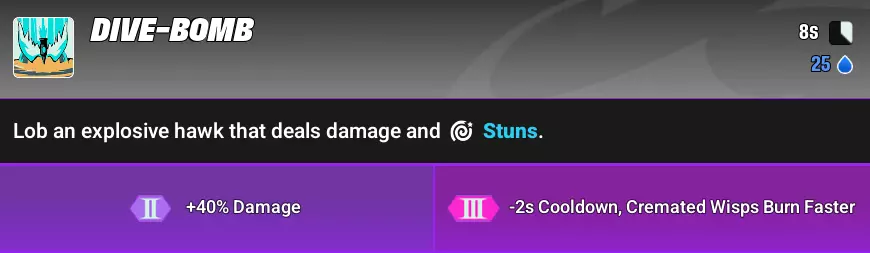 伯劳的人民币技能会释放一只爆炸的鸟,造成敌人位移和眩晕。当敌人处于眩晕状态时,你可以向他们射击造成伤害。射击一次后,再次射击可让敌人承受更多伤害。