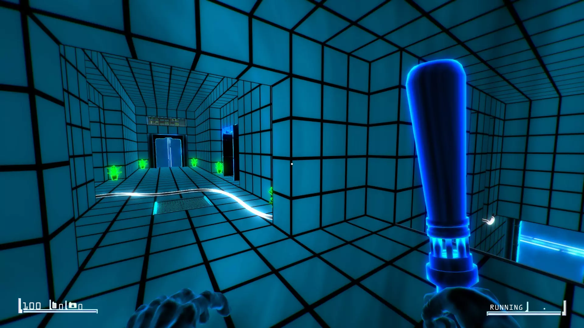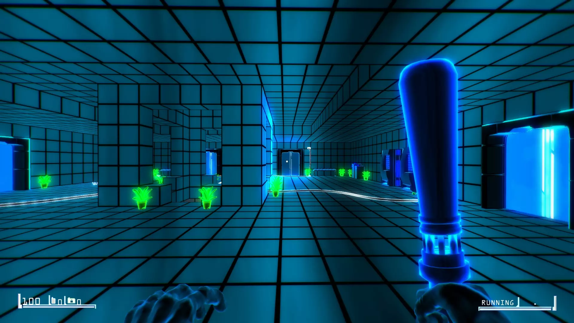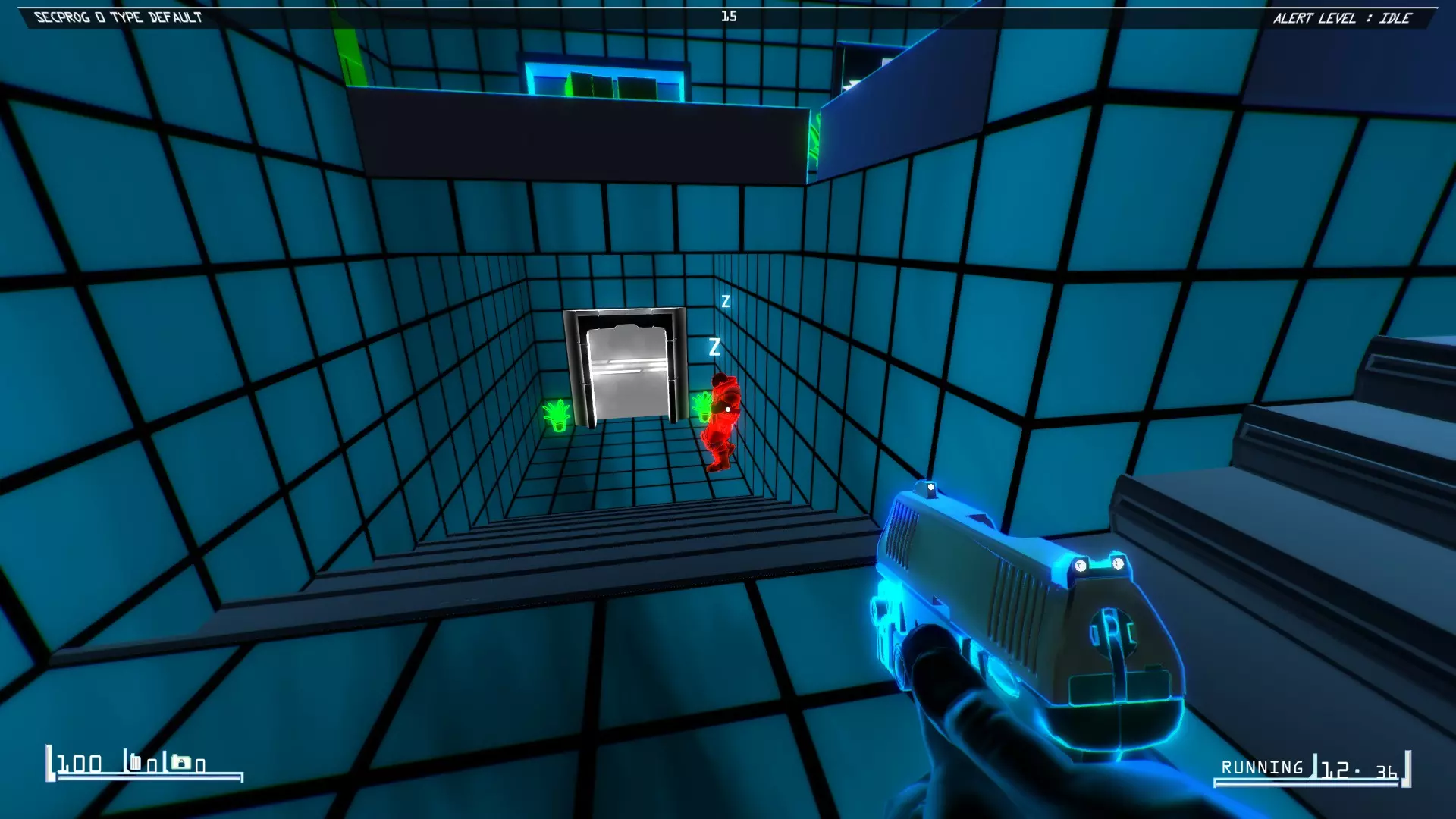 穿过右侧的蓝色门,沿着走廊向下进入有两只安保蜘蛛的房间。