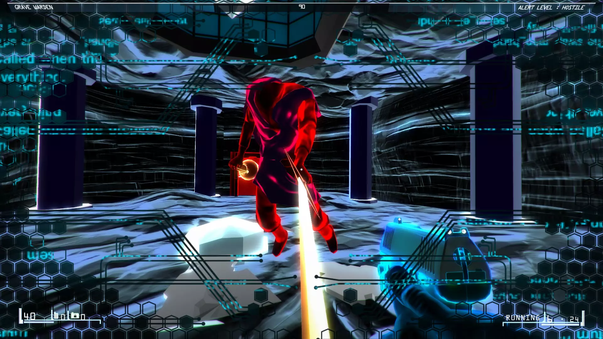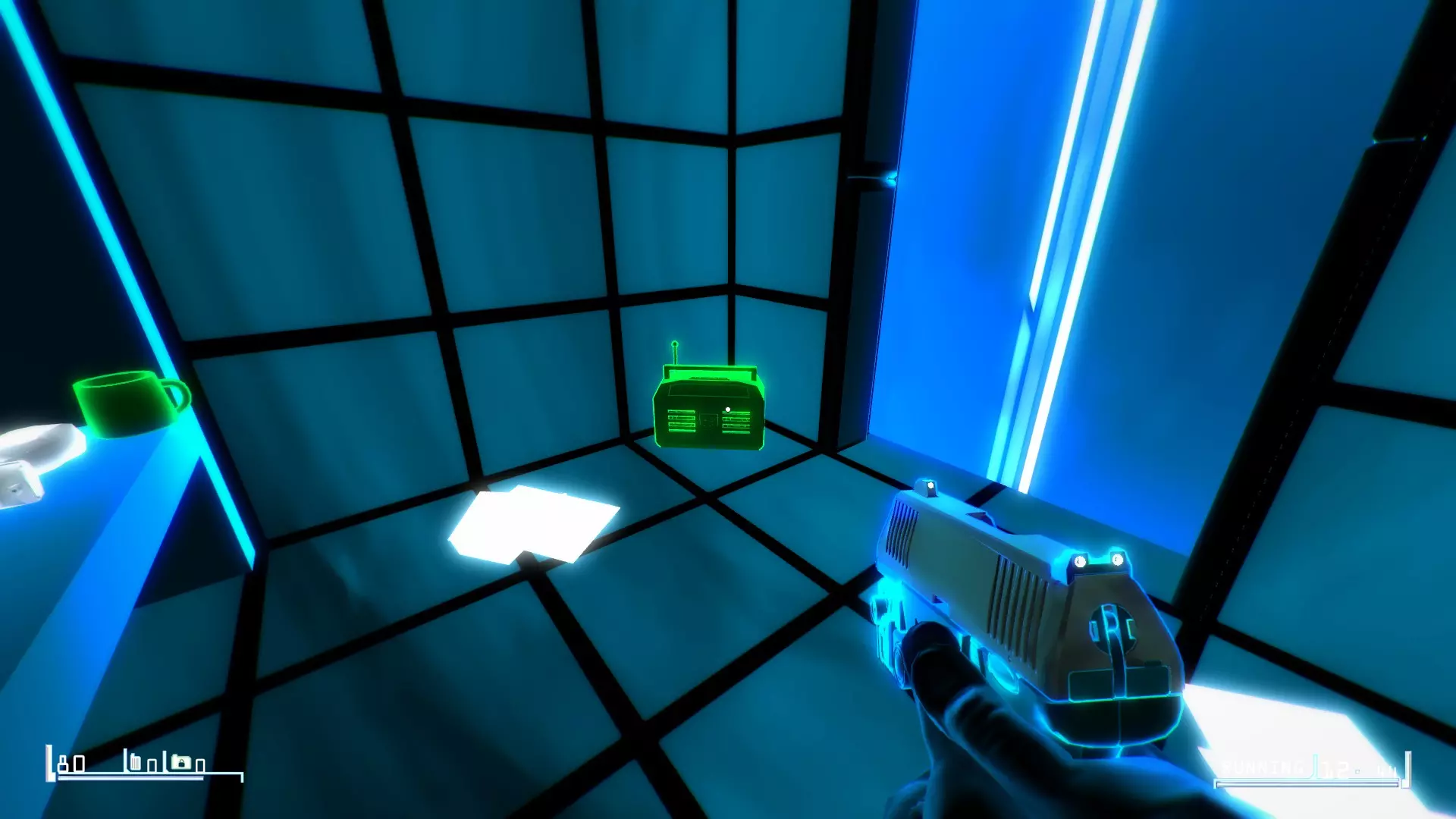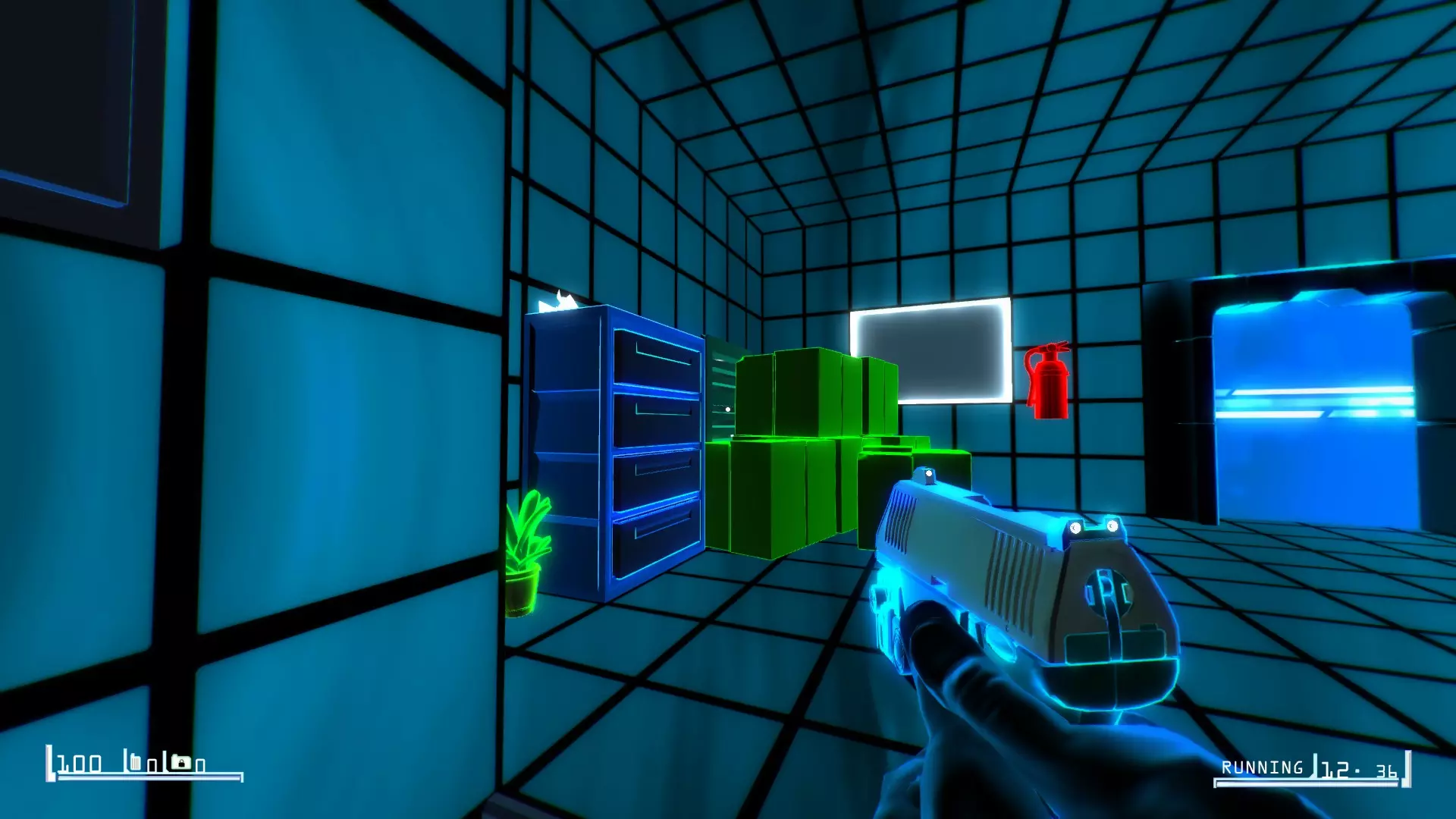 你会发现音箱放在墙上的架子上,旁边是一个友好的灭火器。 04层:四 - 那个黑客装置 径直走向2级权限的门槛,站在交叉路口。转身面向你来时的方向。稍微向右看。