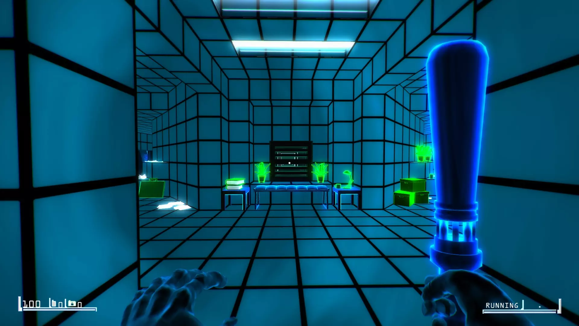 爬上房间中央的盆栽楼梯,穿过天花板通风口。沿着通风口一直走到尽头,直到你掉进一个小房间。