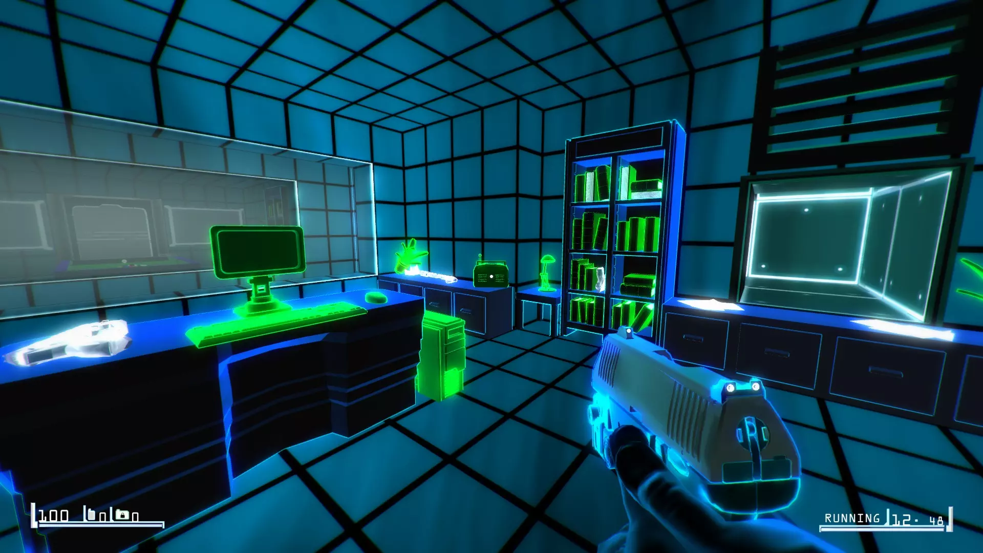 你会身处这个杂乱的房间里。在左侧走廊的中间会有一张桌子。跳过它,继续沿着走廊前进,贴着左墙走。