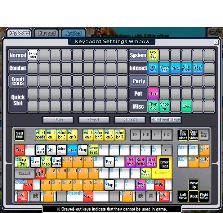 4. 注册表情后,点击【确定】进行保存。 5. 打开【ESC】>【按键设置】,检查表情快捷键是否设置正确。默认应为F1、F2、F3、F4、F5、F6、F7、F8、F9键。