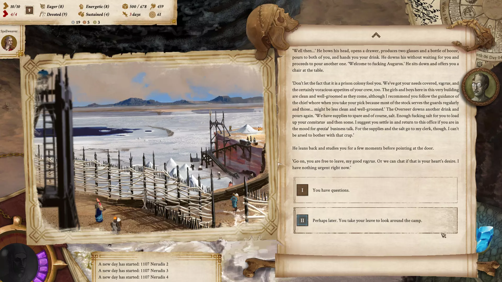 瓦格鲁斯是什么? 为了利益而战的英勇流浪者 在重建时期之后,越来越多的帝国公民开始过着半游牧生活,他们不断在偏远的定居点之间穿梭,运输货物和传递消息。不久之后,一种新的领袖形象出现了:为了利益而嗅觉敏锐的无畏流浪者。瓦格鲁斯常被普通民众浪漫化,但实际上,他们可能像婴儿一样无害,也可能沦为最卑劣的罪犯。他们在贸易复兴中的重要性固然被过分夸大,但即便如此,他们也值得在此被铭记。帝国威严瓦伦·谢瓦里斯的宫殿史,节选自伊恩-佩勒尼斯所著《历史集》。 在帝国语言中,“瓦格鲁斯”一词原意为“旅者”,如今则泛指所有管理【科米塔图斯】的人,无论其任期是临时还是永久。【科米塔图斯】是一种商队,但用“商队”一词来形容可能并不准确,因为【科米塔图斯】(复数形式为comitati)不仅从事贸易活动,通常还会提供雇佣兵服务、自愿担任向导,或是探索废弃之地。尽管灾难过后定居点已重建,但如果存在连接它们的道路,这些道路依然极度危险。 在游戏中,玩家将扮演一名瓦格鲁斯(vagrus),组建自己的“comitatus”,其中包括护卫、搬运工、侦察兵、驮兽以及奴隶。队伍的组建和管理是游戏的重要组成部分。无论你想以商人、雇佣兵还是探险家的身份进行游戏,都可以按照自己偏好的玩法来组建你的“comitatus”。
