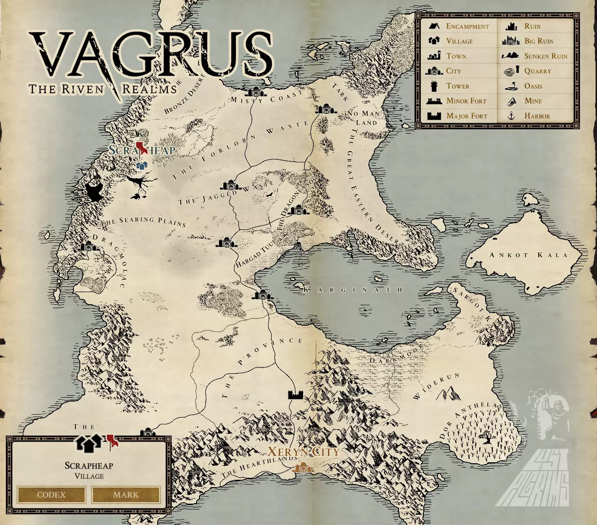 游戏的故事发生在哪里? 人们称之为【破碎之地】。对于像我们土地一样腐朽扭曲的事物来说,这是一个美丽而富有诗意的名字。但它并非一直如此。作为人类创造的最古老、最高贵的文明,旧帝国曾经几乎囊括了整个【人类摇篮】——泽林大陆。然而,在数千年的进步和无与伦比的成就之后,帝国不可避免地走向了停滞与衰落。[...] 压迫弱小世界;奴役所有民族;掠夺外星资源;压迫帝国公民;多线作战;种族灭绝……最终,众神再也无法容忍以他们名义犯下的这些恐怖行径。“一系列神圣的预言早已预示,为了纠正自身的错误,灾难降临到了帝国之上。在这场被称为浩劫的可怕连锁事件中,他们在短短几天内就毁灭了整个帝国。” ——阿戈斯,年迈的旅者 《瓦格鲁斯 - 万壑之地》的故事发生在万壑之地,尤其是在黑暗大陆泽林。这里曾发生过一场被称为“浩劫”的难以名状的灾难,在千年前几乎彻底摧毁了最古老的人类文明——帝国。幸存者们试图重建家园,但灾难过后,他们不得不与魔法异常现象、恐怖生物、野蛮人以及来自自然界之外的存在进行斗争。在游戏当前的状态下,尽管已经经历了一段恢复时期,但这片大陆和帝国依旧如同扭曲的漫画一般。大地充满了各种危险,大多数在孤立定居点之间旅行的人都会组成武装团体以确保安全。 灾难期间释放的巨大魔法能量扰乱了事件的自然秩序。其后果因地区而异:有些地区被诅咒,有些变成燃烧的沙漠,有些是布满灰烬的贫瘠土地,还有些则不断遭受神秘风暴的侵袭,在那里任何人和事物都无法生存。大地上散落着比定居点更古老和更新的遗迹。在这些古老的城镇、逐渐废弃的营地和阴森的城市之间,道路寥寥无几。唯一的例外是帝国大道,它从最北端的索特城港口一直延伸到据说是帝国中心的泽林城——那里是都城所在地。独眼巨人崛起大教堂正在沉睡。 由于灾难中现实本身受到了损害,来自域外位面(蕴含宇宙原始力量、曾是神明居所的维度)的众多生物和流浪种族通过裂隙进入了裂隙位面,并在那里建立了新的家园。其中包括睿智的巨龙领主及其忠诚的龙种追随者、卑劣的恶魔混血种族、流浪的卡尔-里什商人等等。在那场浩劫过去的千年间,无论是这些新的定居者,还是古老势力的残存者,都在为了在这片被遗弃的大陆上占据一席之地而争斗。有些人活了下来,有些人则被黑暗吞噬,如今的局面如同一件脆弱的雕像般维持着;不过,大体上还算稳定。