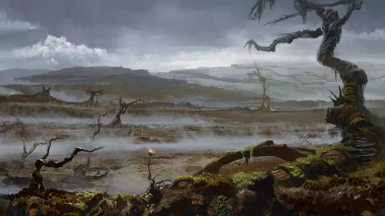 许多人以为这片大陆及其居民已尽数覆灭,但最终,幸存者们从藏身之处艰难爬出,却迎面遇上了不再友善的土地。魔法异象、大灾变的痕迹以及形态各异的扭曲生物,如今与他们共享家园。恐怖的存在从现实结构的裂缝中涌入,并崛起统治当地居民。随着时间推移,这些新兴势力以自己的方式重建了覆灭的帝国,无神且充满复仇之心的裂隙领域从灰烬中诞生。这片土地的居民如今在新帝国的高压统治下艰难求生。“这片大陆本身,一直在抗拒我们为自己建造一个舒适家园的所有努力。” ——阿戈斯,年长的旅行者 灾难发生很久之后,大陆的大部分地区都被神秘风暴吞噬,大片区域变得完全不适宜居住。幸存的大部分社群在地下或与世隔绝的地区度过了数十年。大约四百年后,大部分魔法异常现象的强度减弱,或者神秘地退缩到特定区域,并一直停留在那里。其中一些现象可以归因于十二贤者以及他们的重现(当然,这绝对是值得称赞的——以帝国的名义)。在各个地区,大陆的居民们正缓慢地开始重新定居和重建的过程。然而,由于这片土地几乎面目全非且充满危险,这一过程极其艰难且耗时。 神秘异象 “我们到达时,洞穴的深处有一堆营火。它散发着热量,却没有任何声音。火焰仿佛凝固在了完美燃烧的瞬间。周围的陶罐和木勺之类的物品看起来一尘不染——或许是不会老化?部分厨具由金属制成,这明确表明整套物品都来自大灾变之前。我们队伍中一位携带哈德里尼姆的年轻贵族不顾我们的警告,拿走了一些金属和木头碎片。一天后,他陷入了嗜睡状态。”“一天后,他从战利品中被救了出来。然而,当我们抵达托扎格避难所时,他已头发脱落,皮肤苍白如纸,身体消瘦,牙齿也掉了大半。他当时才二十一岁,看起来却像九十岁的老人。” ——节选自瓦格鲁斯·塞克瑟玛的日记 灾难过后,席卷大陆的毁灭性神秘风暴虽在数百年后退缩至少数小区域,却留下了强大的神秘残余。这种灾难能量的残留引发了魔法自然界的无数异常现象,至今仍在破坏着这片土地。这些异常大多难以察觉,其严重程度介于轻微干扰到致命威胁之间。已知部分异常现象是固定不变的,而另一些则看似在移动。此外,风暴通常会席卷周边区域,并造成破坏。