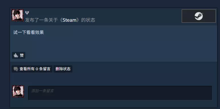 此时刷新页面,或者前往你的Steam动态页面就可以看到成功发布的状态,也就是我一开始展示的内容。