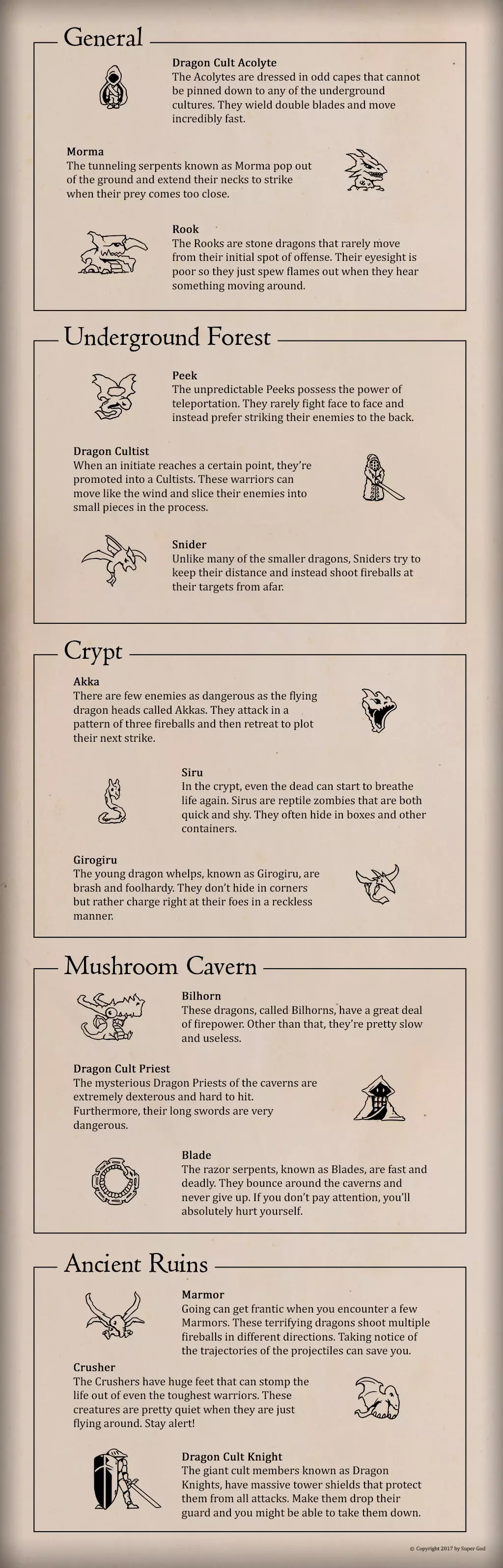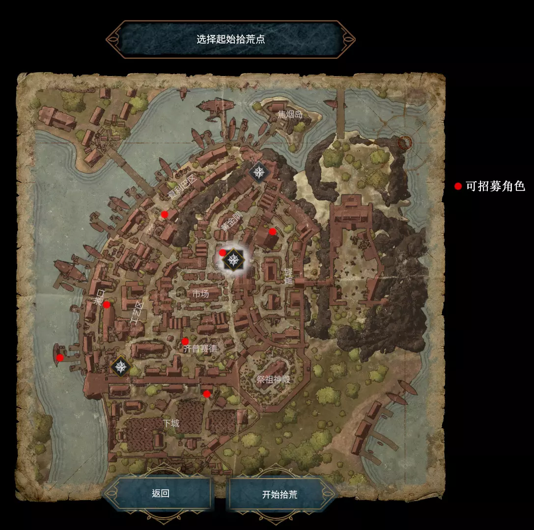 堡垒生活 人物状态变为黄色时会降低工作效率,变为红色时走路会变得很慢,基本无法干活。 人物的进食和饮水状态变为黄色时才会进食和饮水,吃饭喝水可使用快捷键。 淋雨导致的不适无需吃药,可通过睡觉自然恢复;生病时需服用中草药。 受轻伤时使用简易绷带,受重伤时使用绷带。 睡眠状态为白色时,可在当天午后进行休息,这样夜间就能进行侦查和拾荒。 拾荒 夜晚拾荒是紧张刺激的时刻,这决定了你第二天的资源情况。拾荒时间有限,各个区域还有敌军巡逻。出门前要根据堡垒建筑情况,想好当天要携带的物品以及必须带回的紧缺物资。比如我今天想开图捡东西就探好路带火把和铲子,想交易就带交易物品,想杀卫兵就带斧头或剑。 游戏一共有3个拾荒道路,叙事模式的起点位于市场,其他模式的起点和地图里的东西会有所变化,这里我只讲一下叙事模式的布局,其他模式留给大家自己探索。 叙事模式的市场可用铲子通向齐普赛德和黄金隅,想去工艺区起点要在齐普赛德用铲子过去,在工艺区起点附近可以用火把去下城区,齐普赛德通往祭祖神殿的钥匙要在第六天开始市场起点的岗楼里获得(岗楼要用铲子打开),市场通往工艺区的门要用钥匙打开(钥匙在夏利巴区中部),从黄金隅右上角可用火把进高城区。拾荒开始时,不要将起点附近第一个资源堆的物品全部拿走,可将其作为临时仓库,拾荒回来后暂时不带回的物品都存放在这里。在每个区域以及交易商人附近都可以设置一个仓库堆,这样背包满了就无需来回奔波,物品最好积攒够一组后再带回堡垒。武器、火把、铲子等工具可以留在仓库堆,需要时再取出使用。 前几天每天务必带回2-3组木头和1-2组材料,也可以适当携带一些肉和干菜,因为一段时间后地图上所有的肉、干菜和饲料都会变质为腐烂的食物。地里的蔬菜若不采摘则不会腐烂,只有在实在缺乏蔬菜时才进行采摘。拾荒时,只要附近没有卫兵,就双击奔跑;收集物资时点击上方箭头可加速收集。若卫兵离得较近,可改用走路和普通拾荒方式;若无法脱身,则需进入躲藏点。 杀死敌方卫兵的好处是,卫兵会掉落破损的斧头,修好后可提供给堡垒或卖给商人,还能顺便完成成就。不过杀卫兵后拾荒效率会降低。整个地图共有36个卫兵,若想全部击杀,平均一晚上需杀2个。 若想杀卫兵,建议携带一把斧头或剑。杀卫兵时,需在躲藏处等待卫兵经过,然后从其身后上前砍击。拥有战斗+属性的角色砍两刀即可杀死卫兵;若正面硬刚,则大约需要砍四刀,且自身会受伤。杀卫兵之后第二天该地区也会增加巡逻卫兵,不同地区的卫兵人数不同。若想快速拾荒,建议尽量不要击杀卫兵。卫兵数量多的地区(例如工艺区),卫兵的巡逻路线较长,蹲点击杀难度较大,部分不巡逻的卫兵也很难引出来。 右上角时间提示即将天亮时,应立即向起点跑去。途中遇到卫兵尽量躲避,无法躲避时可直接正面冲过去。若路上只有一个卫兵,可将其砍死,即便被砍两下也只是轻伤。天亮后,躲藏点会消失,且所有卫兵都会智能地向你的位置聚集。我曾最多被七八个卫兵追赶,幸好跑得快才没被砍死。此外,被卫兵发现后,第二天该地区也会增加巡逻卫兵。 贸易方面,游戏中共有3个交易商人,分别位于祭祖神殿、黄金隅和码头。祭祖神殿商人位置固定,黄金隅和码头商人的位置会随剧情模式变化。 首次与商人对话时,他会告知所需物品,向其出售这些物品可获得更高价值,不同位置的商人需求存在差异。 交易的硬通货为贵重物品,拾荒搜索到后可放置在交易商人附近,也可选择带回,因为你并非总是前往同一商人处。 其他常用交易物品包括熟食、绷带、药品、斧头和软甲,这些物品价值较高。购买物品时若出价溢出,可补充交易一些零碎东西,使双方交易价格刚好相等。交易商人打开后,其出售的物品基本不会刷新,建议记住每个商人处你想购买的物品。交易时一次可以前往两个商人处。最值得购买的是高级武器、熔炉产物和材料,因为交易商人出售的食物若不购买不会过期,可留到后期食物短缺时再买。 角色 游戏共有16个场景可选角色,不同模式可解锁的角色不同。其中叙事模式可解锁7个角色,位置已在地图上标出。