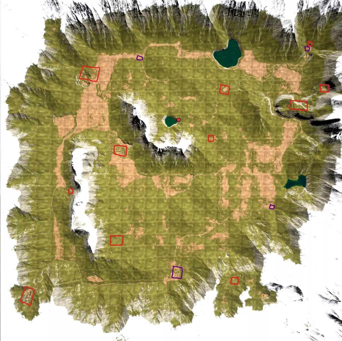 拾荒者模式:蓝色安全区域变小,但地图中靠近黄色区域的雨水收集器、烘晒架、园圃和捕鼠器基本安全。