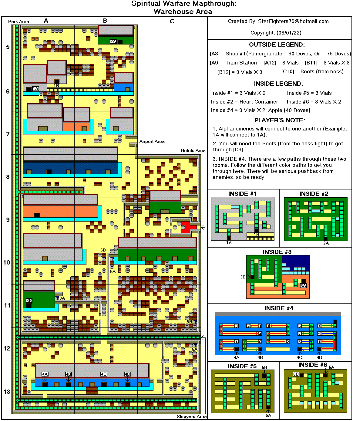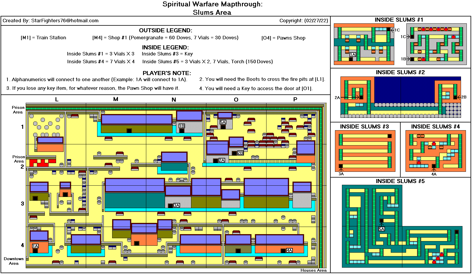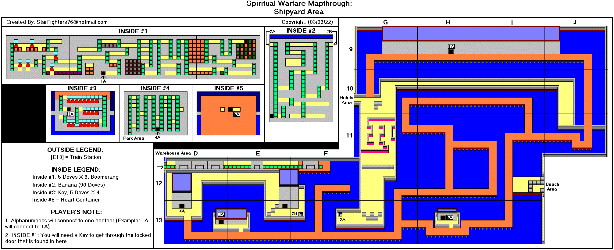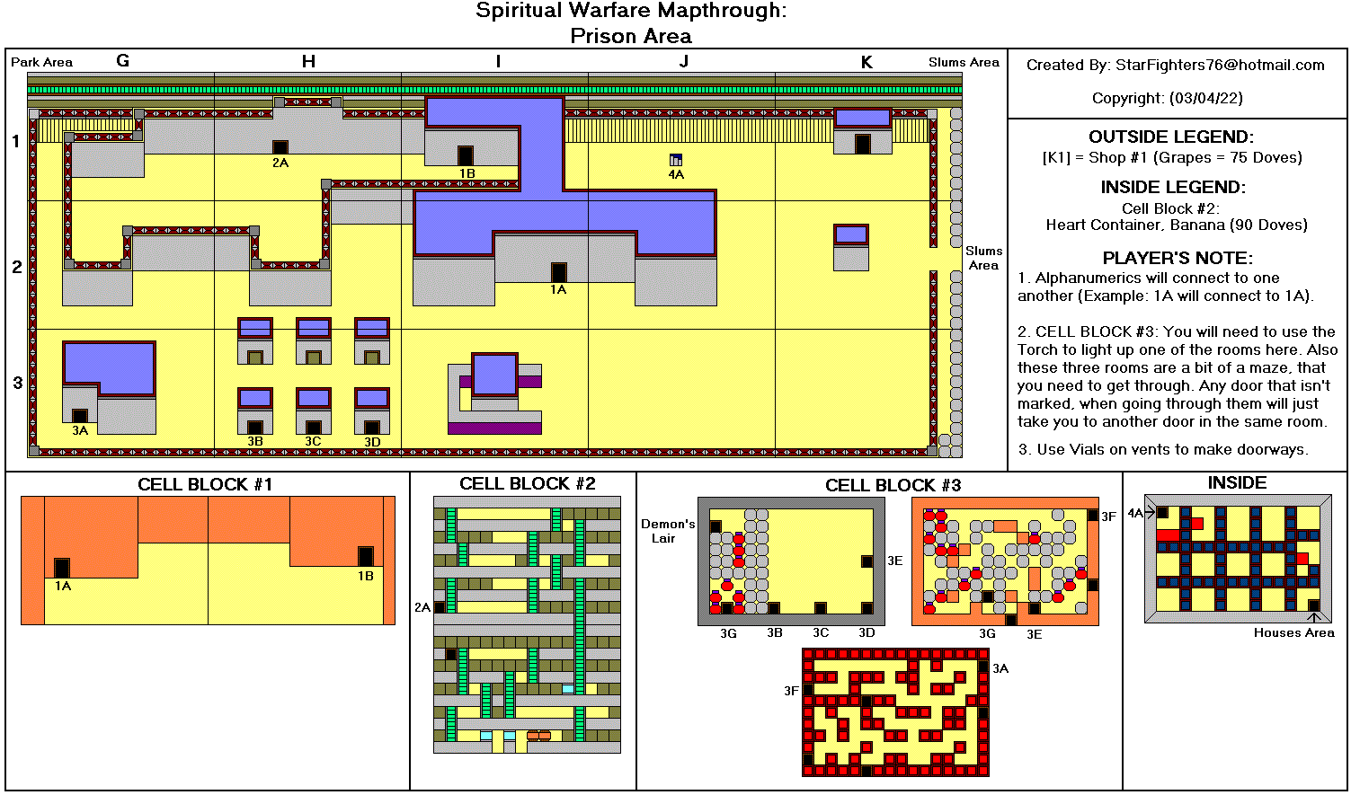 @-起点 *-心之容器 J-参孙的颚骨 P-梨 A-苹果 M-石榴 G-葡萄 B-香蕉 R-木筏 K-钥匙 F-火炬 1-首领房间1(真理之带) 2-首领房间2(胸甲) 3-首领房间3(战靴) 4-首领房间4(救恩之盔) 5-首领房间5(圣灵之剑) 6-首领房间6(信心之盾) D-恶魔要塞(最终首领房间) T-火车站(需要铁路票) #-铁路票 C-教堂 $-当铺 额外地图来自luigimcloud