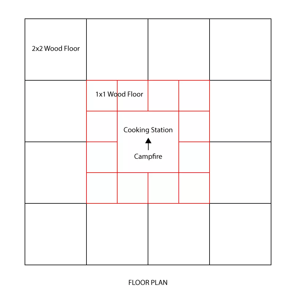 制作锄头!手持锄头,你现在可以出发去寻找建造新家的绝佳地点了!在游戏初期,最好在附近有水源的地方,以便获取珍贵的燧石——不过这也不是绝对的。尽情享受游戏吧!在此过程中,你还可以收集下一轮所需的材料。 建造所有建筑部件共需104木材。 可选物品: 营火 - 2木材和5石头 烹饪站 - 2木材 床 - 8木材 箱子 - 10木材 包含可选物品的情况下,总共需要126木材和5石头。 开始行动吧 你终于准备好建造了!按照下方图片中的示意图进行操作,祝你好运!