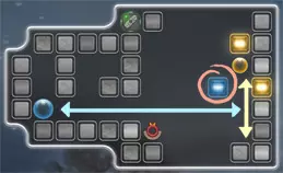 【强子对撞机】发射至少20格长的光束 好的,我们需要一条20格长的光束。 实现位置:解决方案,第1关,第3个窗口“平台”。 从关卡开始位置操作:向下,然后向右。 在这里只需等待一两秒。完成!