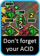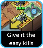 如果没有足够脆弱的敌人,通常需要依靠你的【重型机甲】来充分削弱它们。 当你拥有【蜘蛛机甲】后,情况就会变得有趣起来。虽然直接用它消灭较弱的敌人很诱人,但如果可以的话,不妨考虑是否有价值用它来削弱更大型的目标(尤其是在使用【酸液】时),而把容易对付的目标留给其他机甲。此外,如果没有敌人构成实际威胁,明智的做法可能是保留【蜘蛛机甲】到下一回合,这样你就有更多选择来推动【 vek 】(或者相反,吸引火力)。