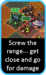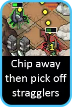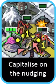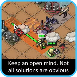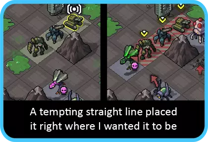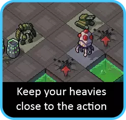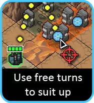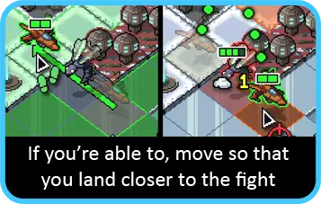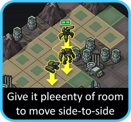 喷射机甲可能是下一个要考虑的单位,其攻击目标可能会受到限制,需要有足够空间来跳过它们。同时也要注意位置:思考喷射机甲在攻击后会停留在何处。如果有移动能力,应尽量让喷射机甲在行动结束时靠近下回合需要到达的位置,而不是远离。如果没有目标,另一个解决办法是看看其他单位能否为你清理出一个目标。