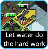 不过,炸弹小子真正的技巧在于利用它们进行走位。你可以先将其发射出去,再移动到合适位置,这通常能为另外两台机甲创造操作空间……而且它们最终仍有可能在某个目标脸上引爆。就算没别的用,炸弹也总能充当护盾,或是阻挡正在出现的 vek 的手段。它们还能用来拾取时间舱。 但要注意,炸弹无法游泳。所以如果你想把 vek 推进水里(这是个好主意),就得改用你的机甲之一来完成。
