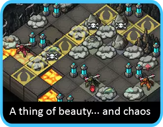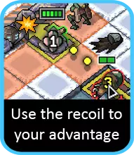 火炮机甲 火炮机甲可以说是你最具战略意义的机甲。当然,它可能不会像其他两台机甲那样取得那么多华丽的击杀,但它能帮你摆脱困境。为什么呢?其火炮的妙处在于可以越过障碍物射击,并且能让你精确控制炮弹的落点。这意味着,只要有几格的活动空间,理论上你可以将敌人推向任何方向……这绝对是不容忽视的能力。
