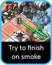 所以如果可以的话,让它保持在前方进行阻挡。这也能让你完美地吸引火力,这在很大程度上也会浪费很多 vek 的回合。只有当你被完全包围时才会真正陷入麻烦……但如果所有注意力都集中在那里,另外两台机甲很可能就可以自由地提供支援了。 第二个技巧是烟雾。留意任何能让你释放烟雾的升级,并优先为这台机甲获取它。它最有可能从额外的移动中受益,并且与被动伤害加成能完美协同。有了护盾和烟雾,这台机甲将成为一个强大的阻挡者。 在战场上