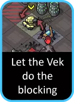 接下来往往会失去普通建筑。记得也要留意一只 vek 能摧毁多少建筑。大多数普通 vek 只能摧毁一个,但更强的 vek 一次攻击就能摧毁好几个……所以显然要优先处理这些 vek,而不是那些造成单次伤害的。如果你不确定:将鼠标悬停在 vek 上,它会显示有多少建筑受到威胁。 最后,机甲受到损伤往往是一种可以接受的权衡。理想情况下,如果这会让机甲只剩下 1 点生命值,你不会想这么做(因为理想情况下,如果你遇到麻烦,你希望有回旋余地),但如果接近关卡末尾,这是可以接受的权衡。 不要阻挡 vek 如果有一个目标仍然几乎总是让我头疼……那就是需要你阻挡正在出现的 vek 的那个目标。最终,为了完成这个目标,你不得不将机甲移动到地图上的特定位置——这些位置往往偏离了它们真正能发挥作用的地方!我承认,如果可以的话,我会尽量避免这个目标。 但在进行常规格挡时也要小心,因为这可能是一把双刃剑。
