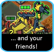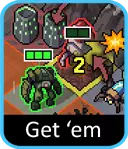 尽管整个小队都以它命名,但炸弹机甲实际上是实力较弱的成员之一,往往被安排在辅助位置(我怀疑在团队命名讨论时掺杂了一些同情因素)。从理论上看,它相当酷炫:你不仅能让Blobbers尝尝它们自己的手段,而且炸弹在发射后还能移动!遗憾的是,区区1点溅射伤害成了它的致命短板。由于没有推动效果,除了跳跳虫之外,它对其他任何敌人都不过是起到骚扰作用而已。