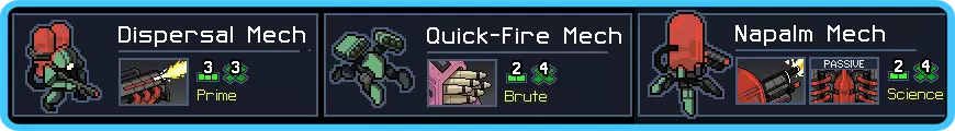 在游戏过程中,选择有萤火虫、甲虫或蜈蚣的岛屿往往能带来丰厚收益,因为这些岛屿能为你的科学机甲提供大量让它们互相攻击的机会。说实话,一旦你完成了主要武器的强化,就不必过于担心备选攻击方式了。如果有机会的话就挑选一些不错的,但你完全可以挑剔一些。反正多余的反应堆最好用来提升你的生命值和移动力,这样能给你更多操作空间。 如果你用它们击败了游戏,那真是太棒了! 10. 秘密小队