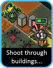 虽然它的武器听起来操作有些别扭……但实际上相当不错,而且很适合狭窄的地方。终于,你可以站在建筑物的另一边,把 vek(异虫)从建筑物旁射飞(奇怪的是,这种推击能力似乎不会把建筑物里的居民也推出去,不过我和他们都没意见)。