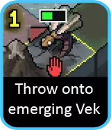 这是一个不错的吸引伤害单位,它拥有奇特的投掷能力,基本上能让你将一只 vek 移动 2 格——当附近有自然危险或其他 vek 攻击时,这一点值得留意。不过它的伤害很糟糕,所以如果可以的话,你应该总是瞄准把 vek 扔进某些东西里。水和正在出现的 vek 是常见目标。还要记住,你不一定要把 vek 扔进另一个 vek 的攻击中……你可以把它们扔过去,让它们成为攻击盟友的那一方。 但你需要小心。和喷气机甲一样,它需要身后有一个空格才能运作,所以需要更可靠的伤害/推动手段才能让它发挥良好作用。长矛、火焰喷射器,甚至助推跳跃都能很好地配合。不过一旦与投掷技能结合使用,你处理这个应该不会有太大麻烦。 但在此期间,让它向前冲锋吸引火力。 vek 对其装甲船体发动的无效攻击越多越好。