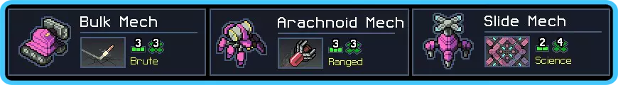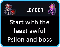 因此,你的初始岛屿需要仔细斟酌,以便维持击杀数量。跳跃者和大量2生命值的敌人是理想选择,远程敌人也可以接受。甲虫、弹跳者和飞蛾也没那么可怕,因为控制机甲可以轻松应对它们。你需要避开的是蝎子,而爆炸灵能者和装甲灵能者也同样要尽量远离。如果没有合适的选择,就选尖塔岛,那里有较弱的机器人和冰层。 至于英雄,任何拥有额外生命值、免费反应炉核心或护甲(比如亚伯·勇)的英雄都能帮助减轻推进机甲早期的压力。 目标: