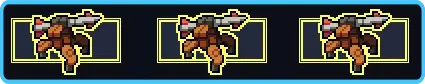 闪电机甲 独来独往的家伙……也可以说是个不合群的怪胎,在别人身边不太安全。 这台机甲就喜欢用闪电鞭挞目标。令人欣喜的是,攻击还会跳向周围所有有单位的格子,对那里的单位造成伤害。只要能找到可攻击的目标,这个连锁反应就会一直持续下去。要是周围有足够多的敌人,它可能就是游戏里伤害最高的武器。