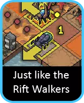 例如,假设一只黄蜂怪躲在角落里攻击目标。本回合唯一能打到它的只有你的炮兵机甲。 在这种情况下,我们知道炮兵机甲的行动已经确定了。因为没有其他方法可以对付那只 vek,所以它的移动方式已经定死。现在你可以确定,只剩下另外两台机甲来处理其他所有事情了。 像这样倒推——找出哪些机甲的行动是必须执行的——有助于将你的注意力集中在剩余的可用选项上。 1. 裂隙行者