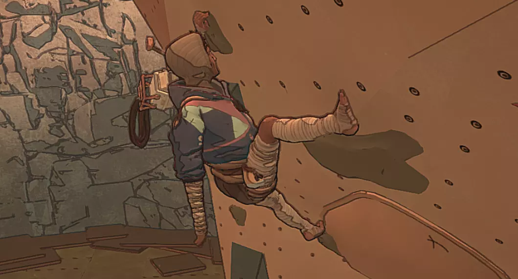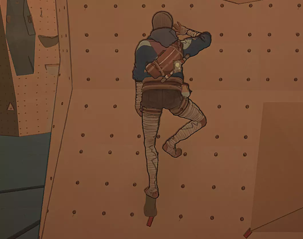 让攀登更轻松的技巧 良好的抓握点 良好的抓握点是在岩壁上保持稳定的基础。 但要判断是否找到了合适的抓握点可能并不容易。不同的抓取声音和手部姿势可以作为判断依据,但即使阿瓦没有遮挡视线,也很难分辨——脚部的抓握点更是如此。 此外,阿瓦自己也无法直接看到许多抓握点,必须盲目地去摸索。这意味着她第一次抓取可能虽然正对着裂缝,却无法稳固抓住,因此需要再次抓取才能真正抓牢。 即使打开灯光投射阴影以更好地发现最小的岩架,仍然有些抓握点只能通过直接试探岩壁才能找到。基于上述所有原因,以及攀岩者能立刻判断岩点好坏这一事实,我强烈建议你在游戏设置中开启岩点反馈功能。并且养成习惯:如果不是在调整身体姿势,一旦抓握到不好的岩点,就立即撤销操作。