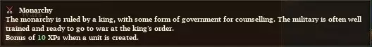 如你所见,我们斯巴达人可不像那些软弱的雅典人。我们生来就是为战争而存在的。每位斯巴达士兵在创建时就拥有经验,我们的将领素质也更为优秀。 不过,可别被那个【极高军事专长】给骗了。随着我们将更多地区纳入版图,由于军事类红色建筑数量相对于地区数量减少,军事专长将会下降。 更令人担忧的是【阿戈戈】修正。它在【希腊传统】带来的25%人力惩罚基础上,又额外增加了50%的人力惩罚。没错,你没看错。与其他派系相比,斯巴达适合服兵役的人口要少四倍!虽然你不该这么惊讶,毕竟我们会把幼崽留在野外,让它们通过与狼搏斗来求生。